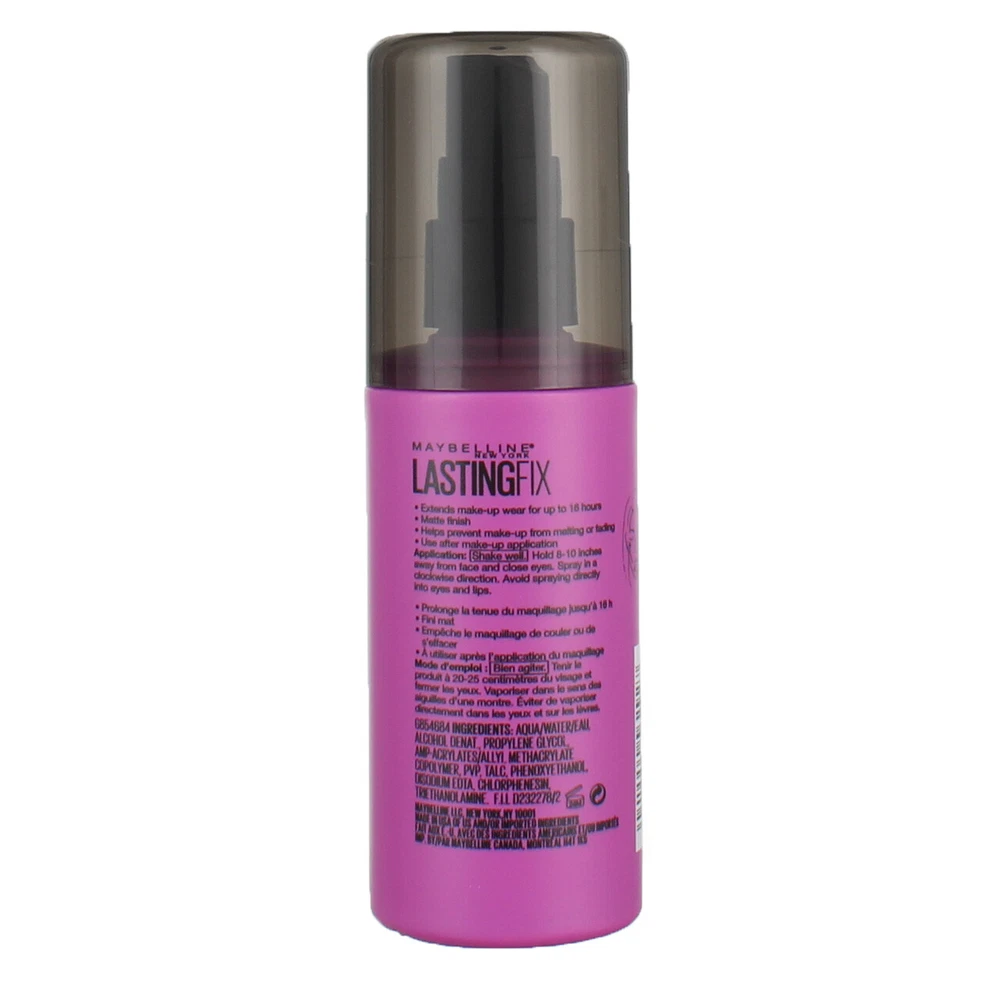 Product Description Brand Maybelline New York Item Form Liquid. See more Product Benefits Makeup Setting Hair Type All About this item. Perfect for busy days and nights, achieve a fresh, just-applied makeup look that lasts for up to 16 hours. Enhance your makeup wear, control shine, and create the ultimate matte effect that will last all day Lock in your matte look no matter where your agenda takes you - no melting, no fading, and all-day wear This makeup finishing spray glides onto the skin for a lightweight and breathable finish and lasts all thorough the day with a soft, comfortable hold This all-day wear makeup setting spray is dermatologist tested, allergy tested, and suitable for sensitive skin Keep makeup looking matte and just-applied all day. Control shine all day and create the ultimate matte finish. No melting, no fading, and up to 16-hour matte wear. The lightweight formula has a breathable feel and a soft, comfortable hold. Ingredients Aqua/Water/Eau, Alcohol Denat., Propylene Glycol, Amp-Acrylates/Allyl Methacrylate Copolymer, Pvp, Talc, Phenoxyethanol, Disodium Edta, Chlorphenesin, Triethanolamine. Inactive Ingredients G854684 AQUA / WATER / EAU, ALCOHOL DENAT., PROPYLENE GLYCOL, AMP-ACRYLATES/ALLYL METHACRYLATE COPOLYMER, PVP, TALC, PHENOXYETHANOL, DISODIUM EDTA, CHLORPHENESIN, TRIETHANOLAMINE F.I.L. D227511/1 Product Description Brand Maybelline New York Item Form Liquid. See more Product Benefits Makeup Setting Hair Type All About this item. Perfect for busy days and nights, achieve a fresh, just-applied makeup look that lasts for up to 16 hours. Enhance your makeup wear, control shine, and create the ultimate matte effect that will last all day Lock in your matte look no matter where your agenda takes you - no melting, no fading, and all-day wear This makeup finishing spray glides onto the skin for a lightweight and breathable finish and lasts all thorough the day with a soft, comfortable hold This all-day wear makeup setting spray is dermatologist tested, allergy tested, and suitable for sensitive skin Keep makeup looking matte and just-applied all day. Control shine all day and create the ultimate matte finish. No melting, no fading, and up to 16-hour matte wear. The lightweight formula has a breathable feel and a soft, comfortable hold. Ingredients Aqua/Water/Eau, Alcohol Denat., Propylene Glycol, Amp-Acrylates/Allyl Methacrylate Copolymer, Pvp, Talc, Phenoxyethanol, Disodium Edta, Chlorphenesin, Triethanolamine. Inactive Ingredients G854684 AQUA / WATER / EAU, ALCOHOL DENAT., PROPYLENE GLYCOL, AMP-ACRYLATES/ALLYL METHACRYLATE COPOLYMER, PVP, TALC, PHENOXYETHANOL, DISODIUM EDTA, CHLORPHENESIN, TRIETHANOLAMINE F.I.L. D227511/1 Suggested Use Lock in your makeup look! Step 1. Shake the bottle well. Step 2. Hold 8-10? away from the face and ensure your eyes are closed. Step 3. Spray 4-6 times around your face. Avoid spraying directly into eyes and lips. Disclaimer The product descriptions and instructions provided by Vitabox are for informational purposes only and are qualified in their entirety by the information available from manufacturers of the products. You should carefully read all product packaging, and contact the manufacturer with any questions before using a product. While we endeavor to ensure that product descriptions are current, manufacturers sometimes change their products. We are not liable for inaccuracies or misstatements about products. We do not provide medical advice or recommendations. You should not use the information provided by Vitabox for diagnosing or treating a health problem or disease. If you have or suspect that you have a medical problem, immediately contact your health care provider. Information and statements regarding dietary supplements have not been evaluated by the Food and Drug Administration or any other government agency and are not intended to diagnose, treat, cure, or prevent any disease.