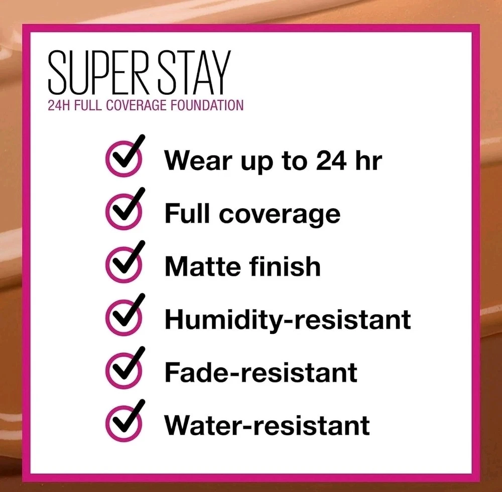 Maybelline Super Stay Active Wear Foundation In 370 Deep Bronze 1fl Oz BNIB. • Transfer, Sweat & Water Resistant, Matte Finish • Full coverage foundation that sets a new standard with up to 30 hour performance wear; Glides on smooth, feels light as air & stays put no matter what; Quick dry forumla suitable for all skin types. • Full Coverage Matte Foundation Formula: Transfer resistant, water resistant, and sweat resistant. • Get a seamless matte foundation look that glides onto skin for even color and lightweight wear. BNIB #Maybelline #superstay #foundation #fullcoverage #longwear #mattefinish #transferproof #waterresistant #sweatresistant #deepbronze