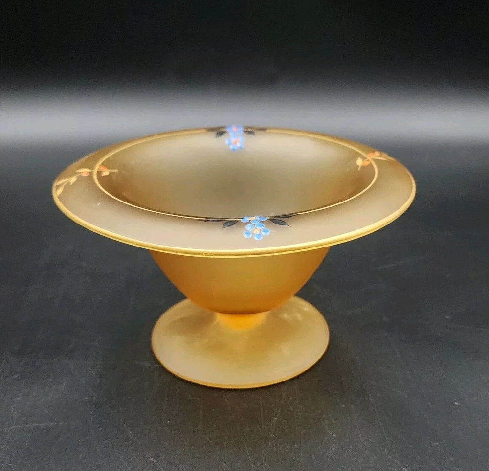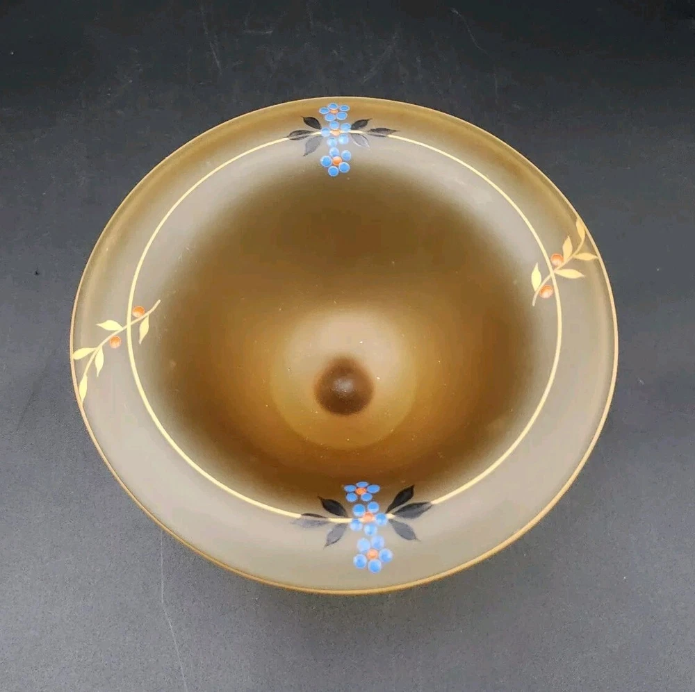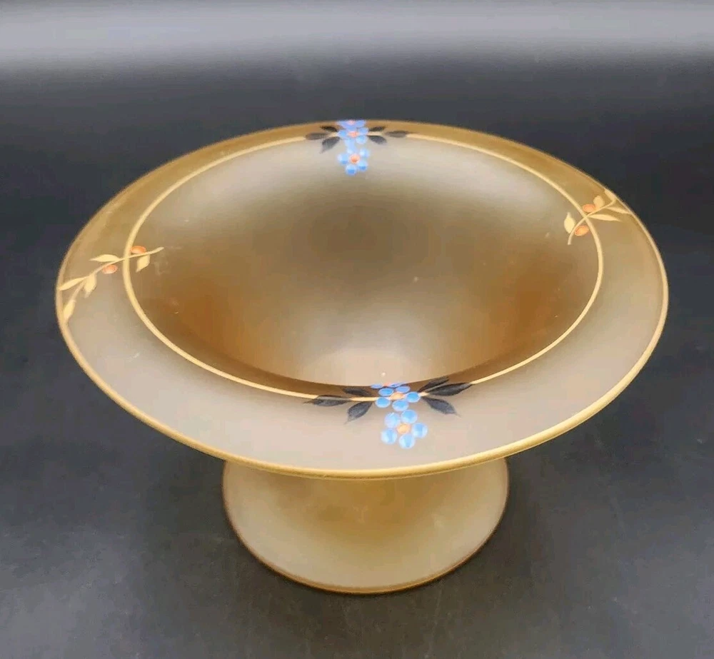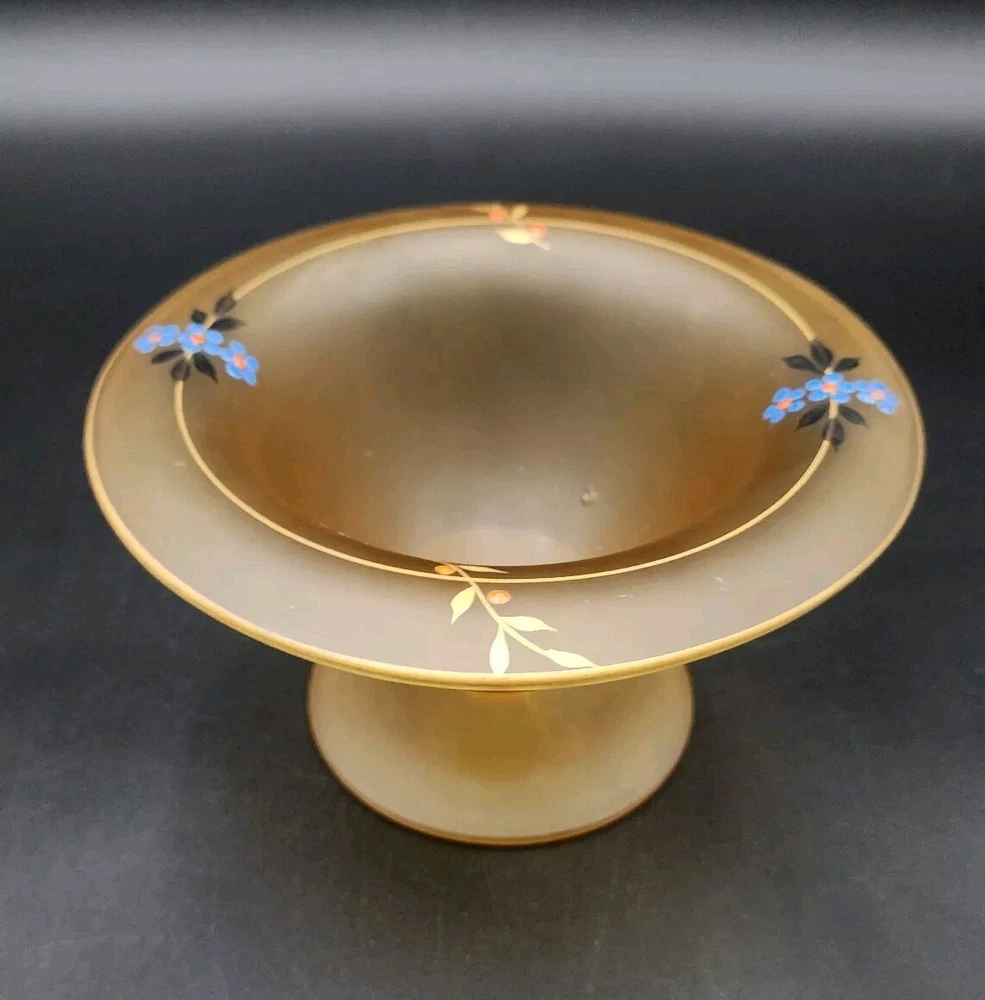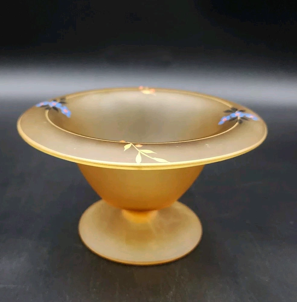 Mayonnaise Bowl Compote Pedestal Hand Painted Frosted Satin Amber Vintage 7"
