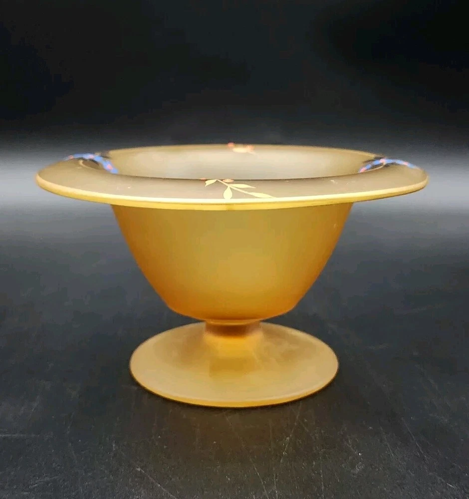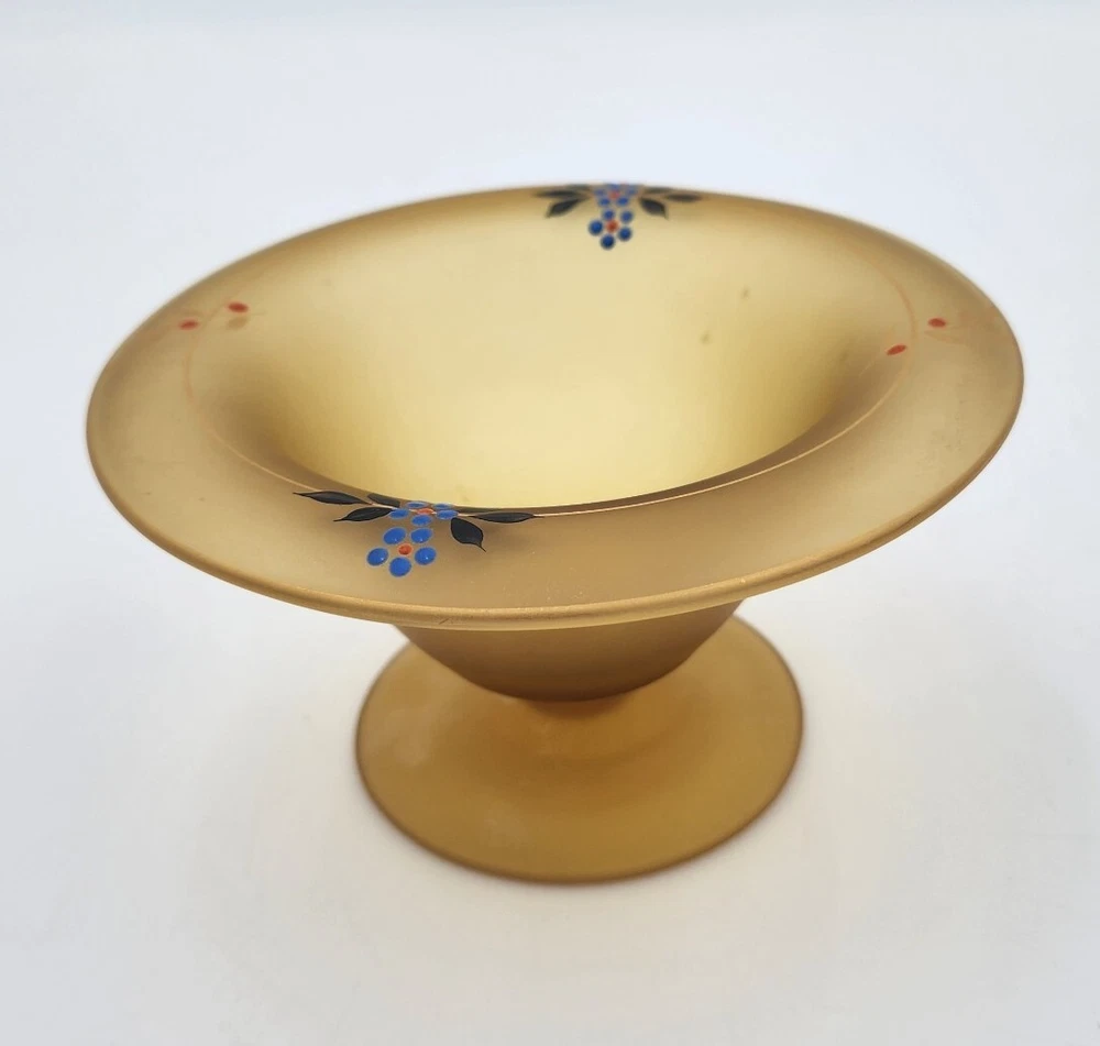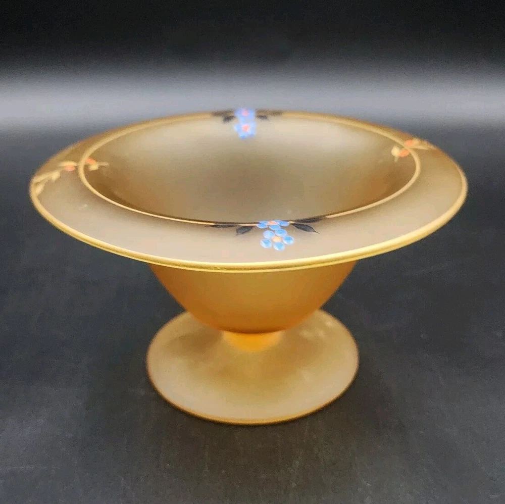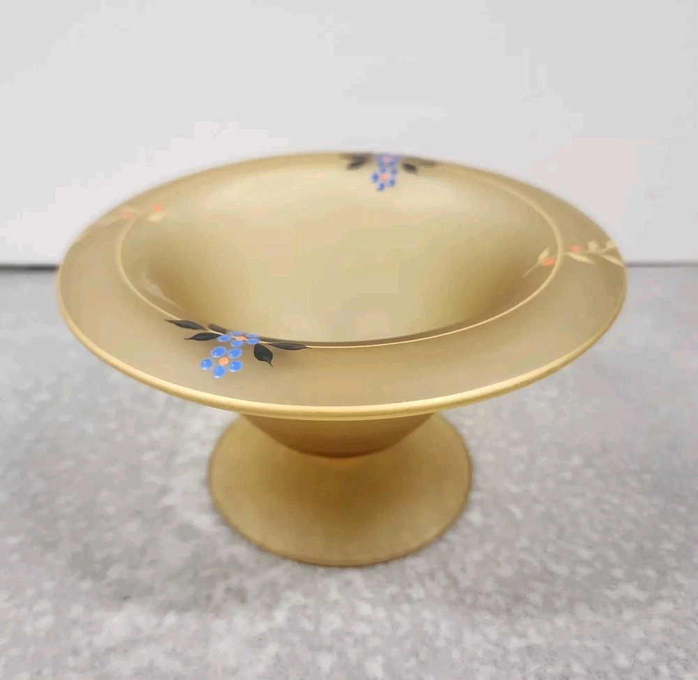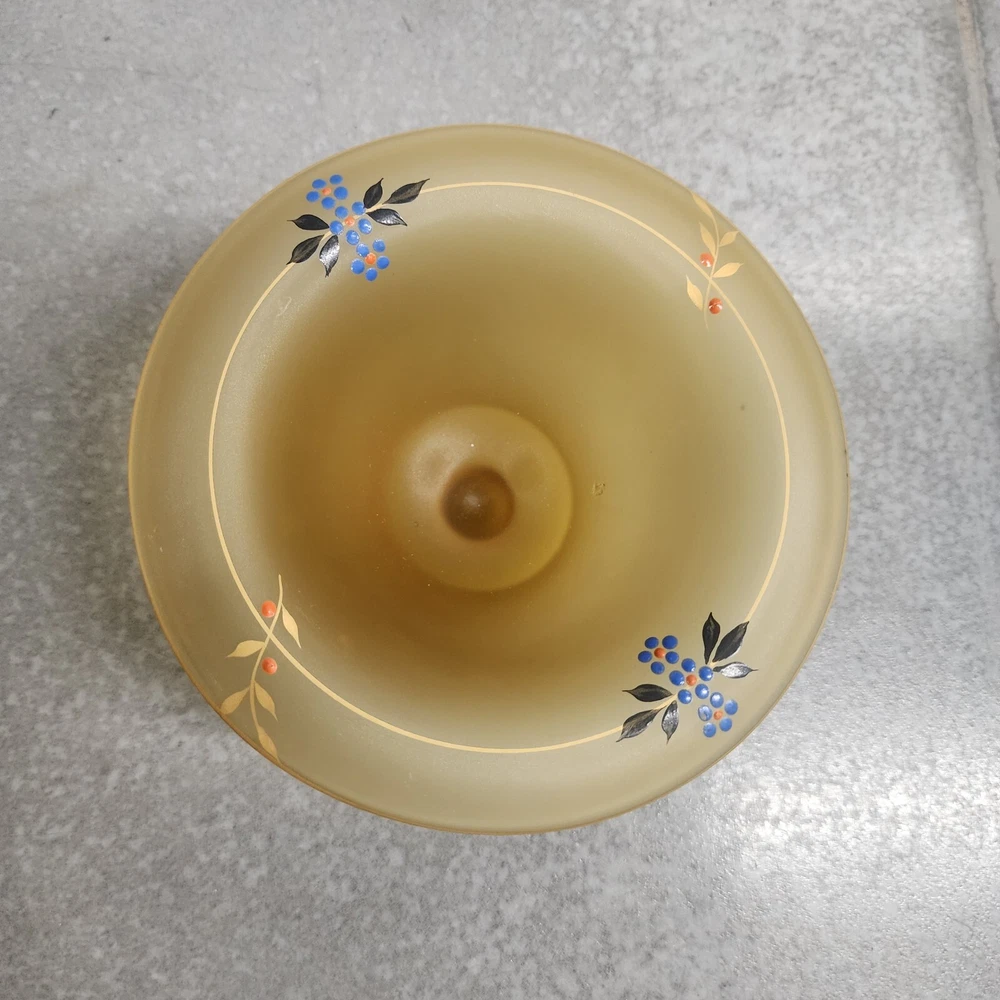 Mayonnaise Bowl Compote Pedestal Hand Painted Frosted Satin Amber Vintage 7"