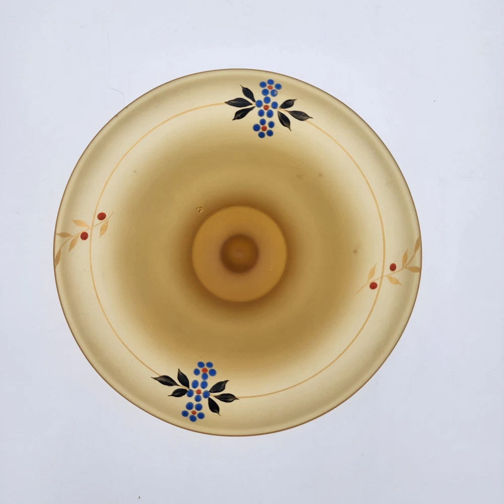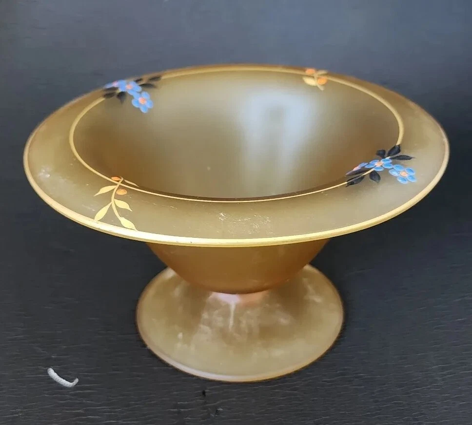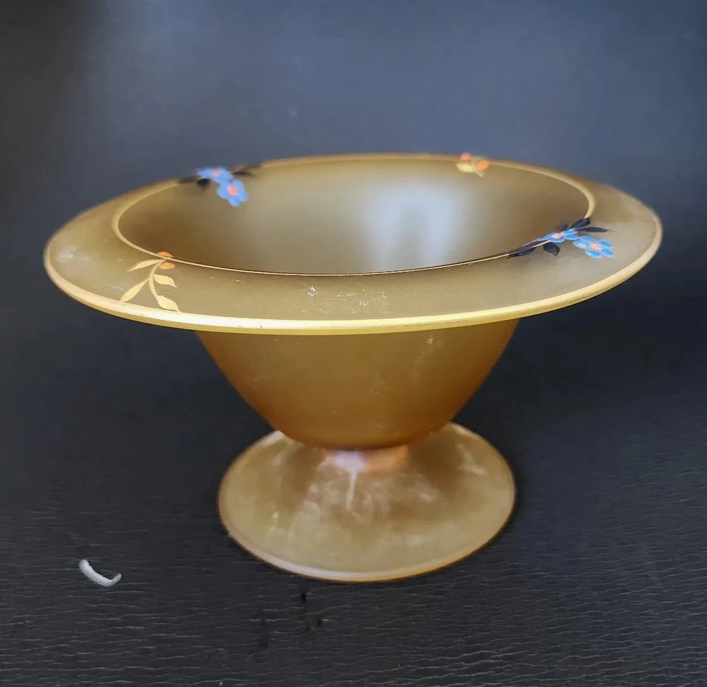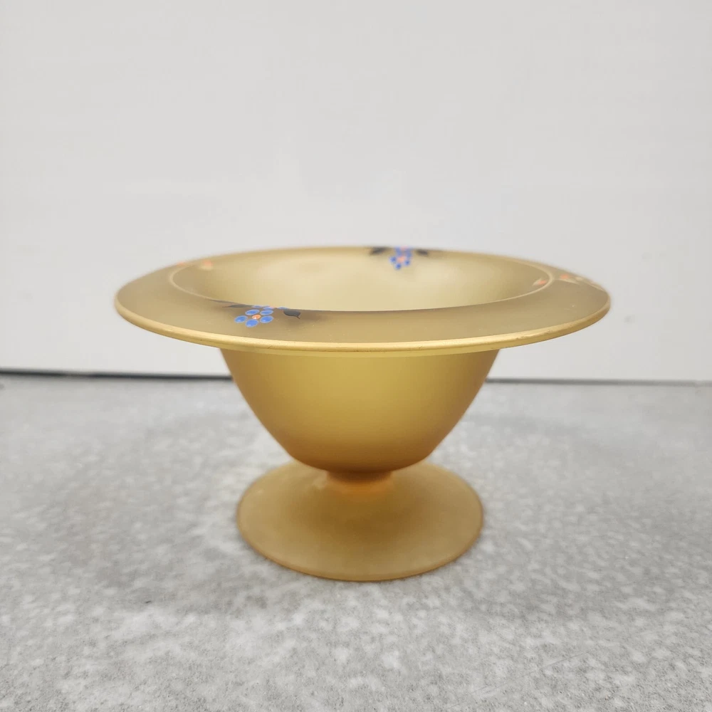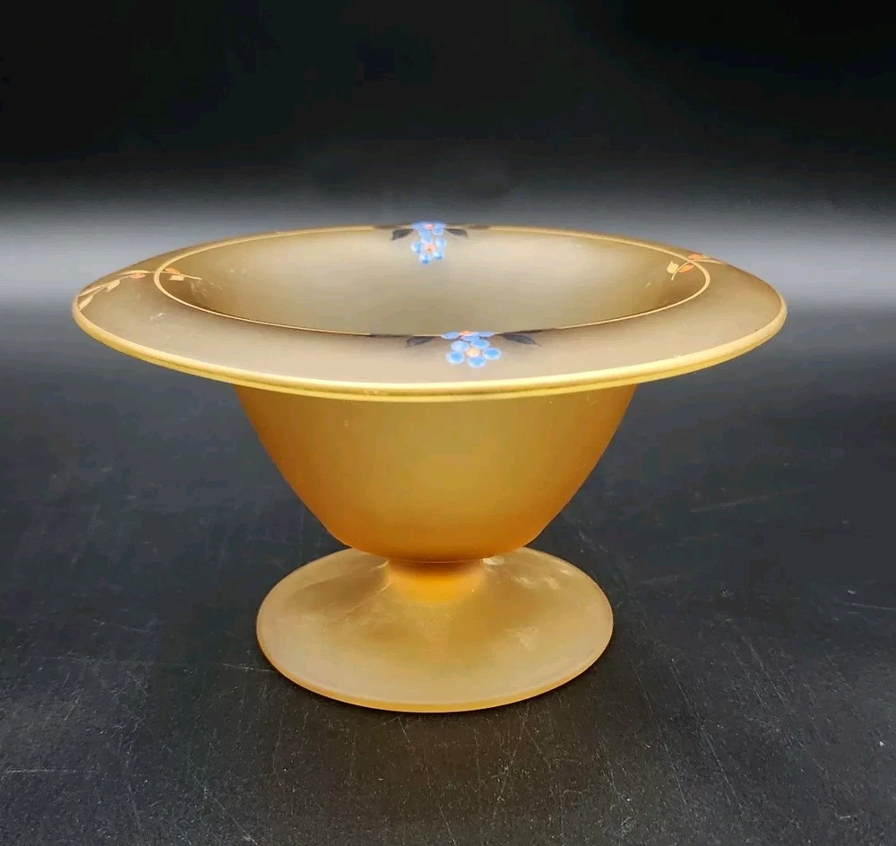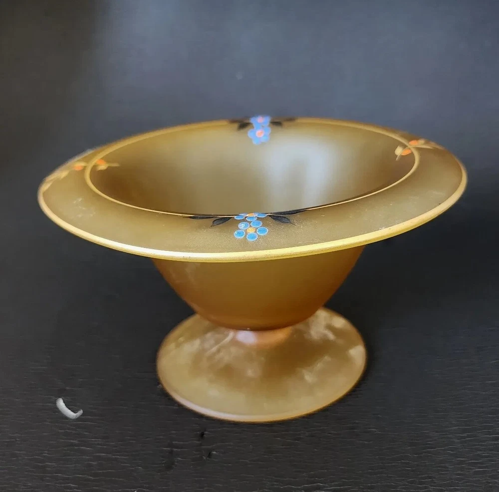 Mayonnaise Bowl Compote Pedestal Hand Painted Frosted Satin Amber Vintage 7"
