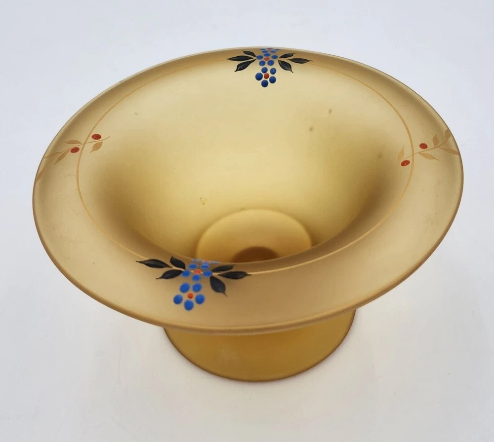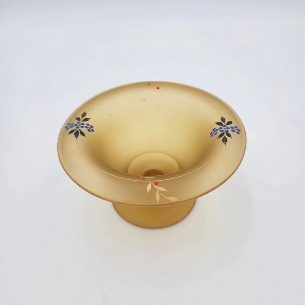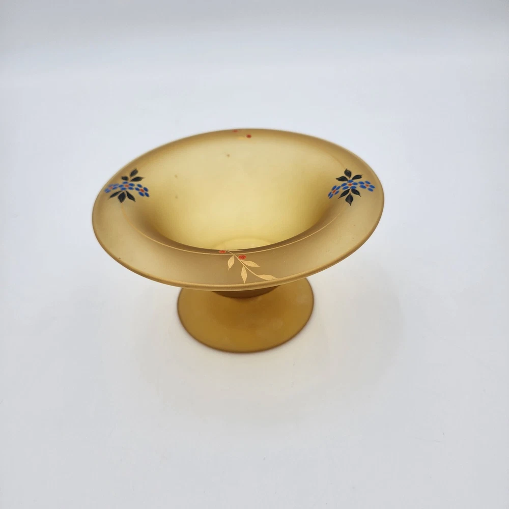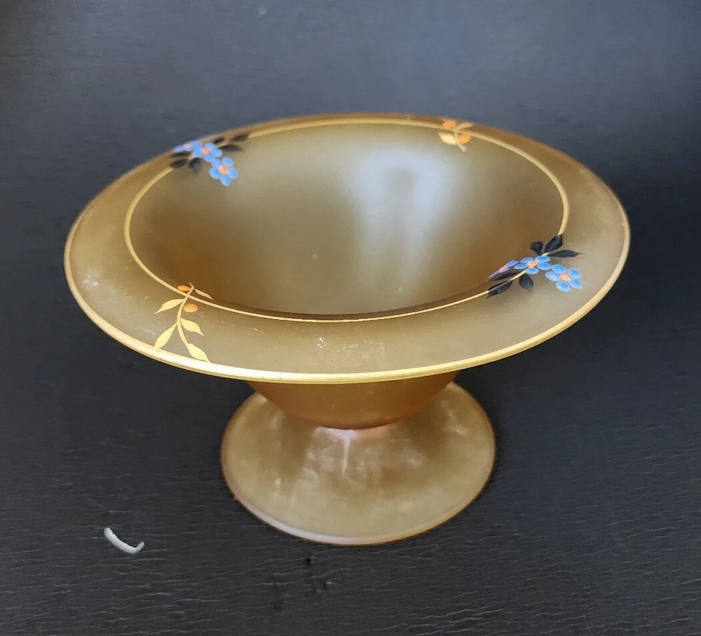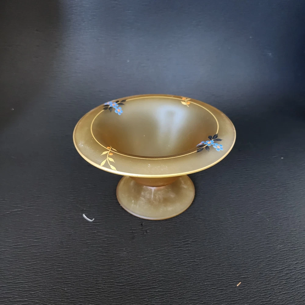 Mayonnaise Bowl Compote Pedestal Hand Painted Frosted Satin Amber Vintage 7"