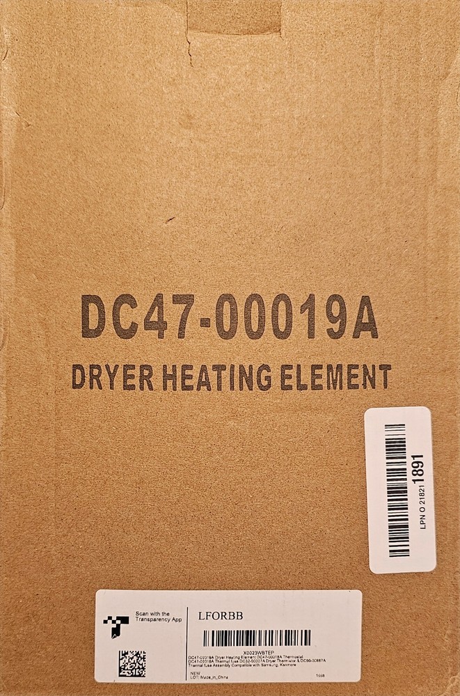 Replacement heating element used for some Amana, Inglis, Kenmore, Maytag, and Samsung dryer models. Directly Replaces: DC47-00019A, 35001247, WP35001247, WP35001247VP, TJDC47-00019A, 2068550, 1185561, AP6008695, AP4201899, PS11741835, PS4205218, PS2038533, EAP2038533, PD00001991, EAP11741835, PD00002996. Features: Produces heat while the dryer is in operation. Must re-use the housing from the old heating element. Insulators and restring already attached for easy installation. Includes (1) Heating Element Assembly. Specifications: Material: Metal / Ceramic. Electrical Specs: 240V, 5300W. Overall Dimensions: 17"L x 6-1/2"W x 2-1/2"H. The Samsung DC47-00019A Dryer is the correct replacement for the following model numbers. DV316LES/XAA DV316BEC/XAA DV438AER/XAA DV337AEW/XAA DV448AEE/XAA DV365ETBGWR/A3 DV407AEW/XAA DV350AEW/XAA DV206LEW/XAC DV5451AEP/XAC DV218AES/XAC DV317AES/XAA DV316BEW/XAA DV331AEW/XAC DV221AES/XAC DV328AEW/XAA DV2C6BEW/XAA DV331AEW/XAA DV340AEG/XAC DV338AEB/XAA DV42H5400EW/A3 DV45H7400EP/AC DV221AEG/XAC DV409AEW/XAA DV45H7200EW/AC DV350AEP/XAA DV220AEW/XAC DV328AEG/XAA DV350AEP/XAC DV220AEW/XAA DV209AEW/XAA DV218AEW/XAA DV210AES/XAC DV330AEW/XAA DV218AEW/XAC DV330AEW/XAC DV330AEB/XAA DV42H5200EF/A3 DV36J4000EW/A3 DV338AEW/XAA DV361EWBEWR/A3 DV328AER/XAA DV365ETBGWR/AC DV431AEP/XAA DV365ETBGSF/AC DV431AEP/XAC DV419AEW/XAA DV42H5400EF/A3 DV219AEW/XAA DV340AER/XAC DV5471AEW/XAA DV431AEW/XAA DV393ETPAWR/A1 DV409AER/XAA DV218AEB/XAA DV419AEU/XAA DV5471AEP/XAA DV419AES/XAC DV218AEB/XAC DV5471AEP/XAC DV393ETPARA/A1 DV405ETPASU/AA DV448AEP/XAA DV350AER/XAC DV350AEG/XAC DV405ETPASU/AC DV448AEP/XAC DV337AEG/XAA DV350AER/XAA DV337AER/XAA DV393ETPAWR/AC DV448AEW/XAC DV410AEW/XAC DV229AEG/XAC DV42H5200EP/AC DV42H5200EW/AC DV42H5000EW/AC DV45H7000EW/AC DV42H5200EP/A3 DVE45N5300V/A3 DV42H5000EW/A3 DV42H5200EW/A3 DVE50M7450P/A3 DVE45N5300W/A3 DVE50M7450W/A3 DV45H7000EP/A3 59289653 59289622 DV40J3000EW/AC DV40J3000EW/A2 DV45H7000EW/A2 DV42H5400EF DV5451AEW/XAC DV5451AEW/XAA DV48H7400EW/A2 DV395ETPASU/A1 DV422EWHDWRAA DV456EWHDSU/ AADV220AEWXAADV209AEWXAA And also some Kemore Maytag models. Please check our other listings for combined shipping. Veteran preference, women owned small business. Thank you so much for looking.