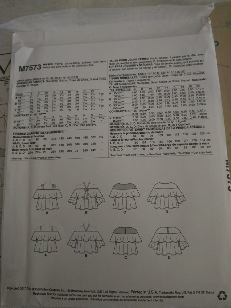 The McCall's Pattern M7573 is a set of sewing patterns specifically for Misses Tops in size 14-22. With four different style options, this pattern is designed for adult females and is uncut, allowing for endless customization. Made in the United States, these patterns offer a variety of sizes to accommodate different body types. Perfect for those looking to create their own unique wardrobe pieces with a vintage feel.