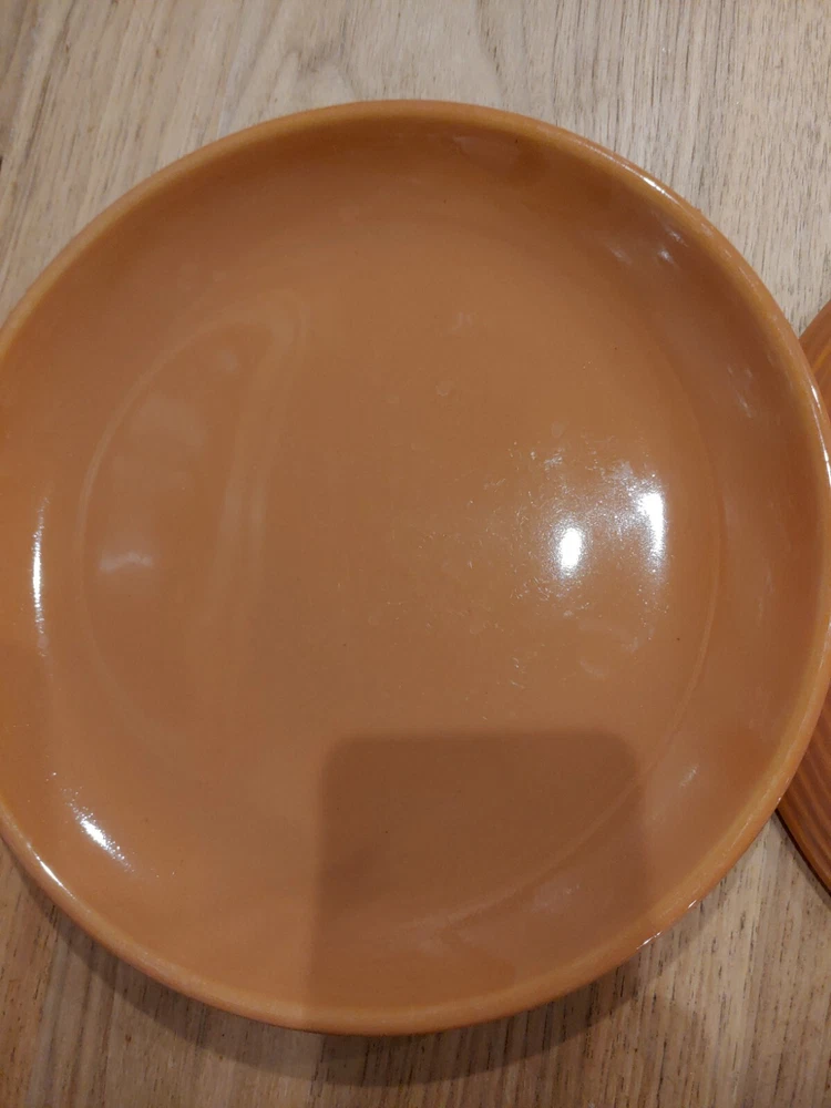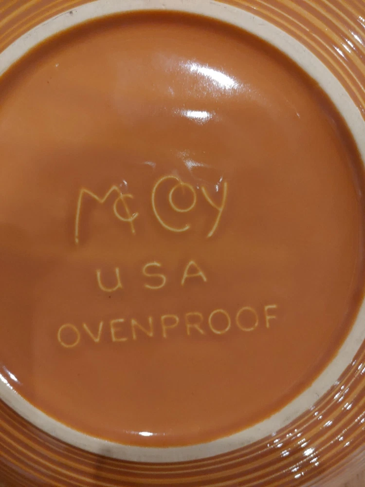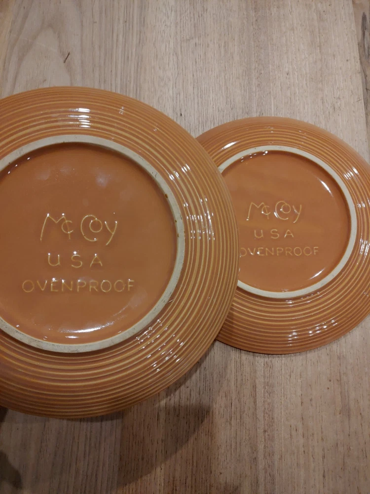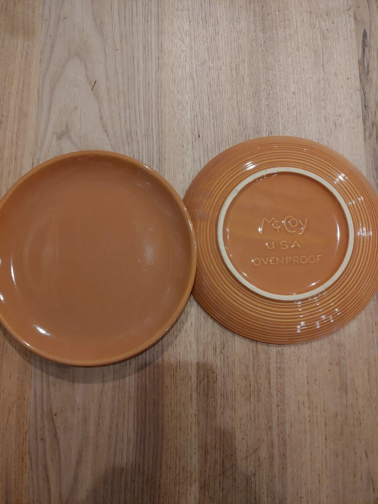 Material:StonewareMPN:Does not applyCountry/Region of Manufacture:United StatesBackstamp:ImpressedEra:Late 20th Century (1970-1999)Number of Items in Set:Two-PieceOriginal/Licensed Reproduction:OriginalYear Manufactured:1970Vintage:YesItem Width:10.50 inType:Dinner PlateUPC:Does not applyBrand:McCoyProduction Technique:PotteryProduction Style:Art PotteryPattern:Mesagtin13:Does not applySet Includes:Dinner PlateColor:BrownTime Period Manufactured:1970-1979Occasion:All OccasionsShape:Round