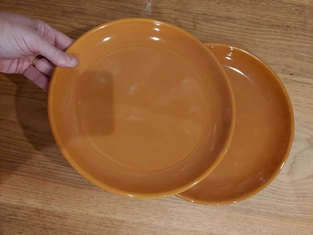 HomeMcCoy Art Pottery Tan Mesa Brown Dinner Plates 10 " USA Ovenproof MCM Dish Rare