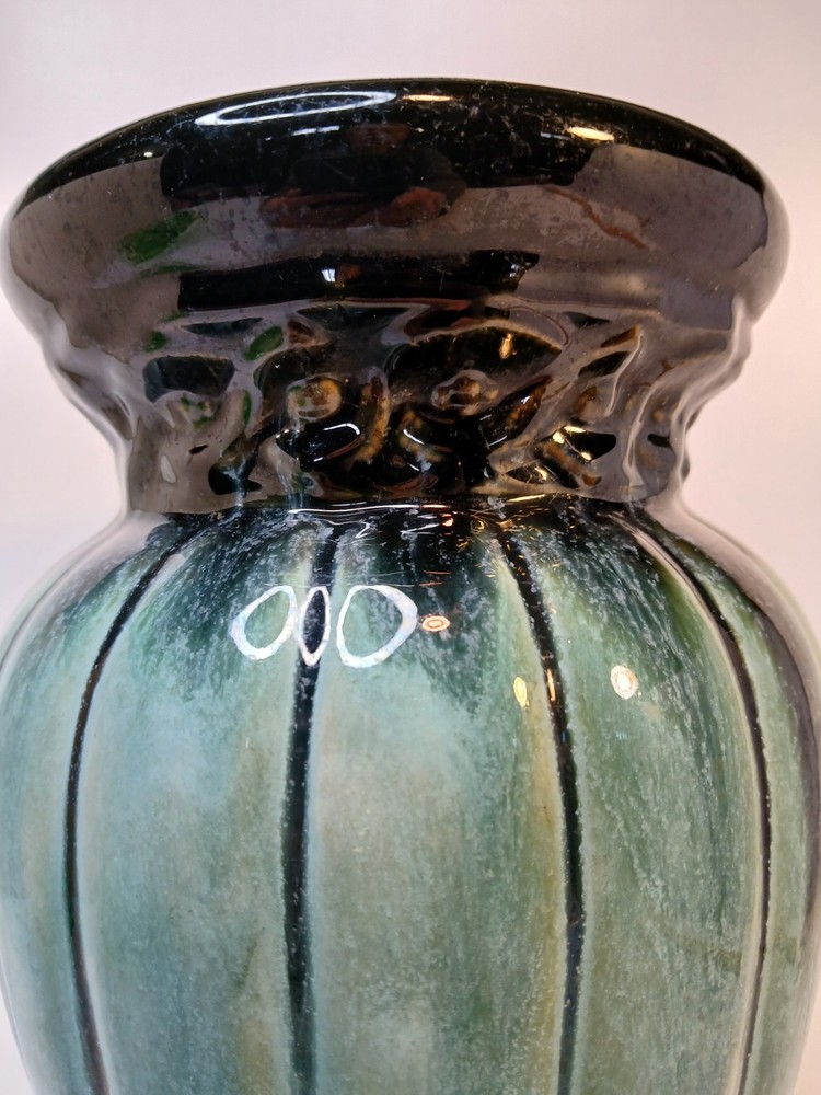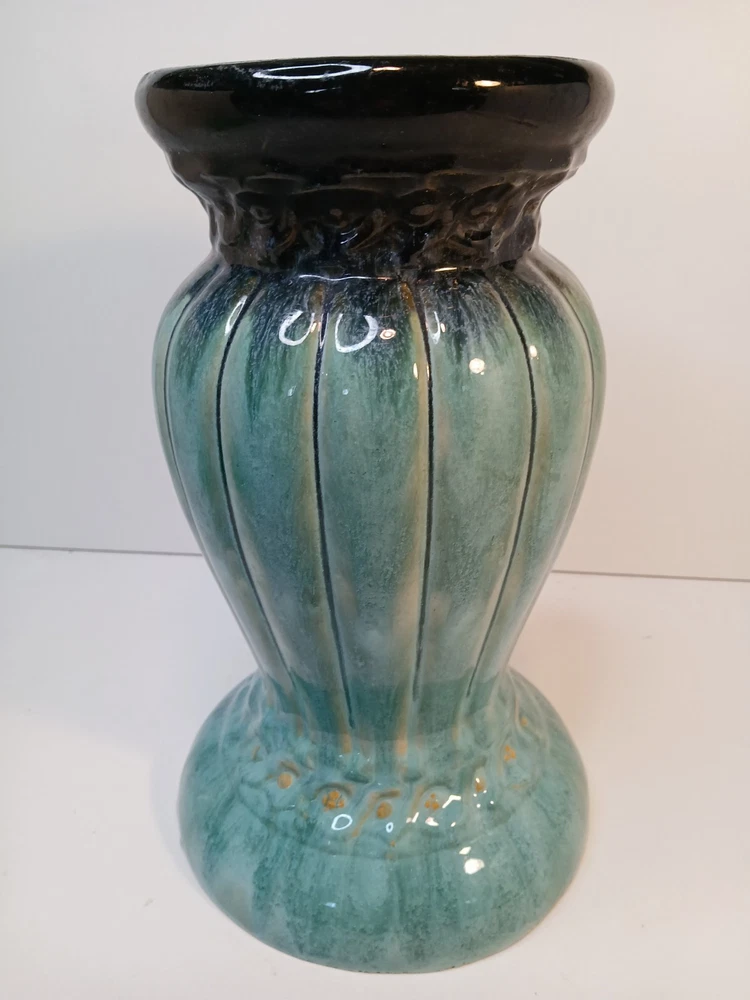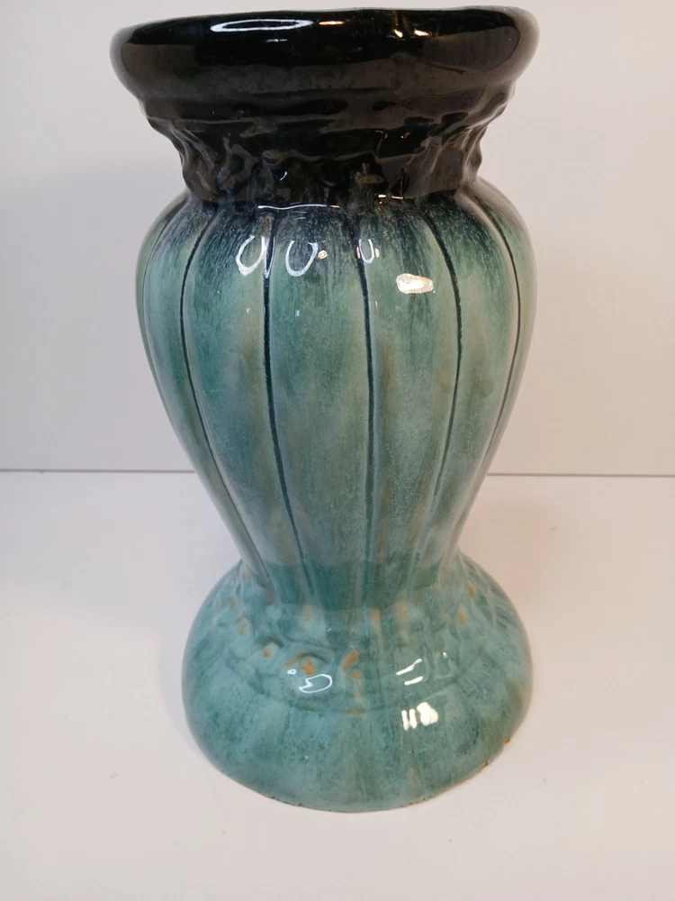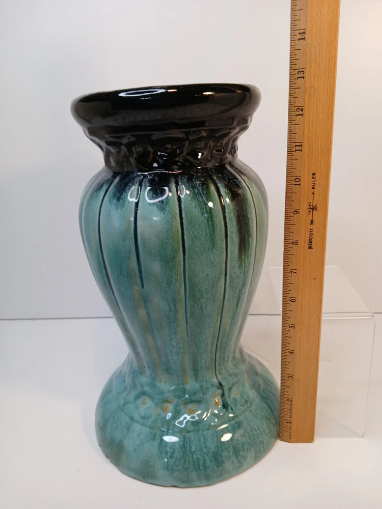 McCoy Blended Glaze Blue and Black Jardiniere Pedestal 12 3/4" No Chips Cracks Few Glaze Flakes on Bottom