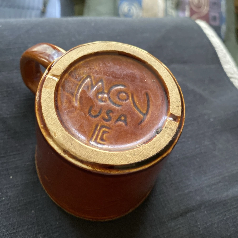This McCoy USA Signature coffee mug is the perfect addition to your collection. With a rich brown color and a D handle, this mug is both stylish and functional. The mug is made of high-quality materials, ensuring durability and longevity. Whether you're a coffee or tea lover, this mug is sure to impress. McCoy is a trusted brand in the industry, known for their quality products. This coffee mug is a great gift for any collector or coffee enthusiast. Please look at the photos that they do show the condition of the item and please ask questions before bidding. Thank you and good luck!