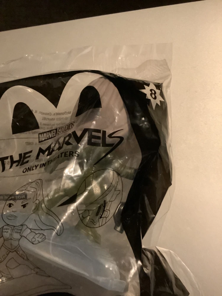 The McDonald's Disney's Kree Supremor Dar-Benn #8 Happy Meal Toy is a toy from "The Marvels" movie, part of the Marvel Studios character family. Manufactured in China in 2023, this toy features the character Kree Supremor Dar-Benn and is recommended for children aged 3 and up. With its tie-in to Disney and Marvel Studios, this toy is sure to be a popular choice among fans of the franchise. It is a collectible item that comes in its original packaging, making it a sought-after addition to any Marvel enthusiast's collection.