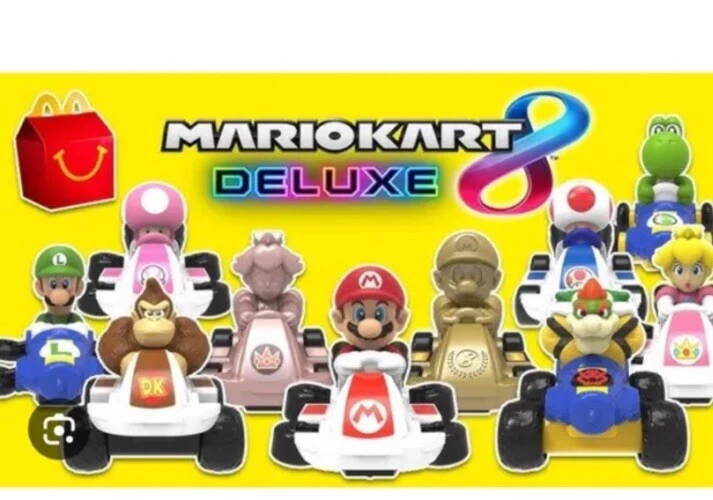 Introducing the McDonald's 2024 Nintendo Switch Mario Kart 8 Deluxe Princess Peach Pink Gold Toy! This limited edition toy is a must-have for any Mario Kart fan. It features Princess Peach in a pink and gold color scheme, and is made by McDonald's. The toy is recommended for children aged 3 and up, and is part of the McDonald's Toys collection. It is an individual piece and does not come with any custom bundles. The toy was manufactured in Canada and is perfect for collectors or children who want to play with their favorite Mario Kart character *Some of the boxes might have creases or dents due to how the manufacturer packed them* Toys are brand new and factory sealed and have not been tampered with * Buy with confidence
