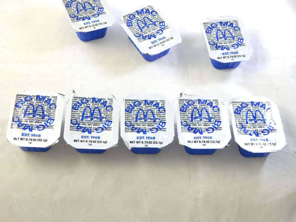 McDonalds Big Mac Sauce Packs Limited Time only. Sold Out at some Restaurants. **Collectabile** Description: 8 New McDonalds Big Mac Sauce packets. Packets can be used or collected. PLEASE look at the pictures closely to form your own opinion of items condition, I could have missed something. I have tried to explain this item the best I can. Item is new and sold as is, ask all questions before bidding. Returns are accepted within 30 Days; the item must be returned in the same new condition as when it was shipped. Payment is due within 2 days. Items are shipped within 1-2 business days. None paying bidders will be reported to eBay. I DO NOT SHIP OUT OF THE CONTINENTAL UNITED STATES. 3250