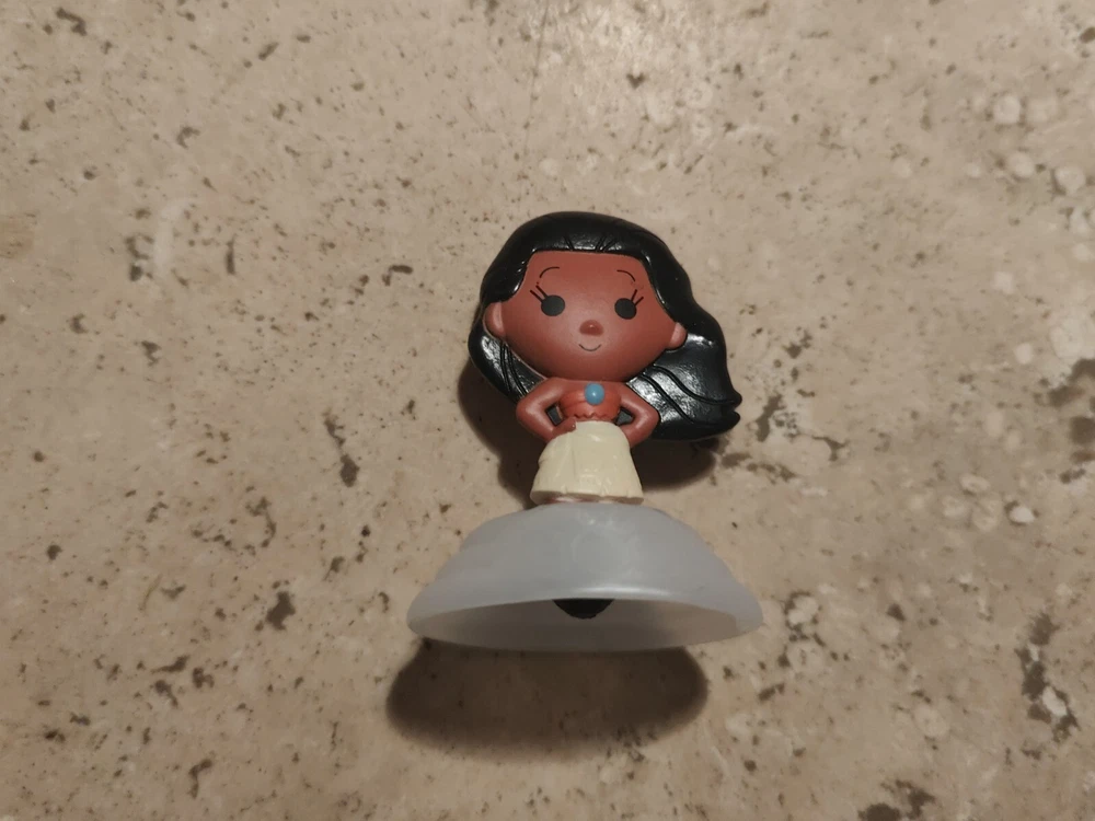 The McDonald's Disney's 100 Celebration Happy Meal features toys inspired by popular Disney characters Aladdin, Loki, and Moana. All three figures are preowned in average condition. Each stand approximately 2.5" more or less