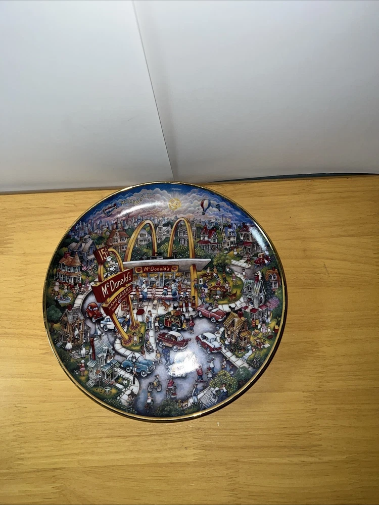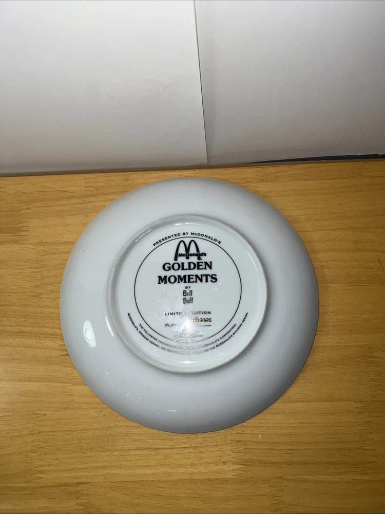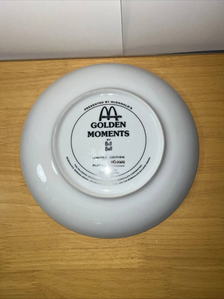 This collector plate by Bill Bell features a beautiful multicolor design on fine porcelain, commemorating special times with a vintage touch. The plate is part of the McDonald's Golden Moments collection, produced in the late 20th century using art pottery techniques. It's a perfect addition to any decorative collection, celebrating American culture and history. The plate is made in the United States and is part of the Early American Prescut/EAPC product line.