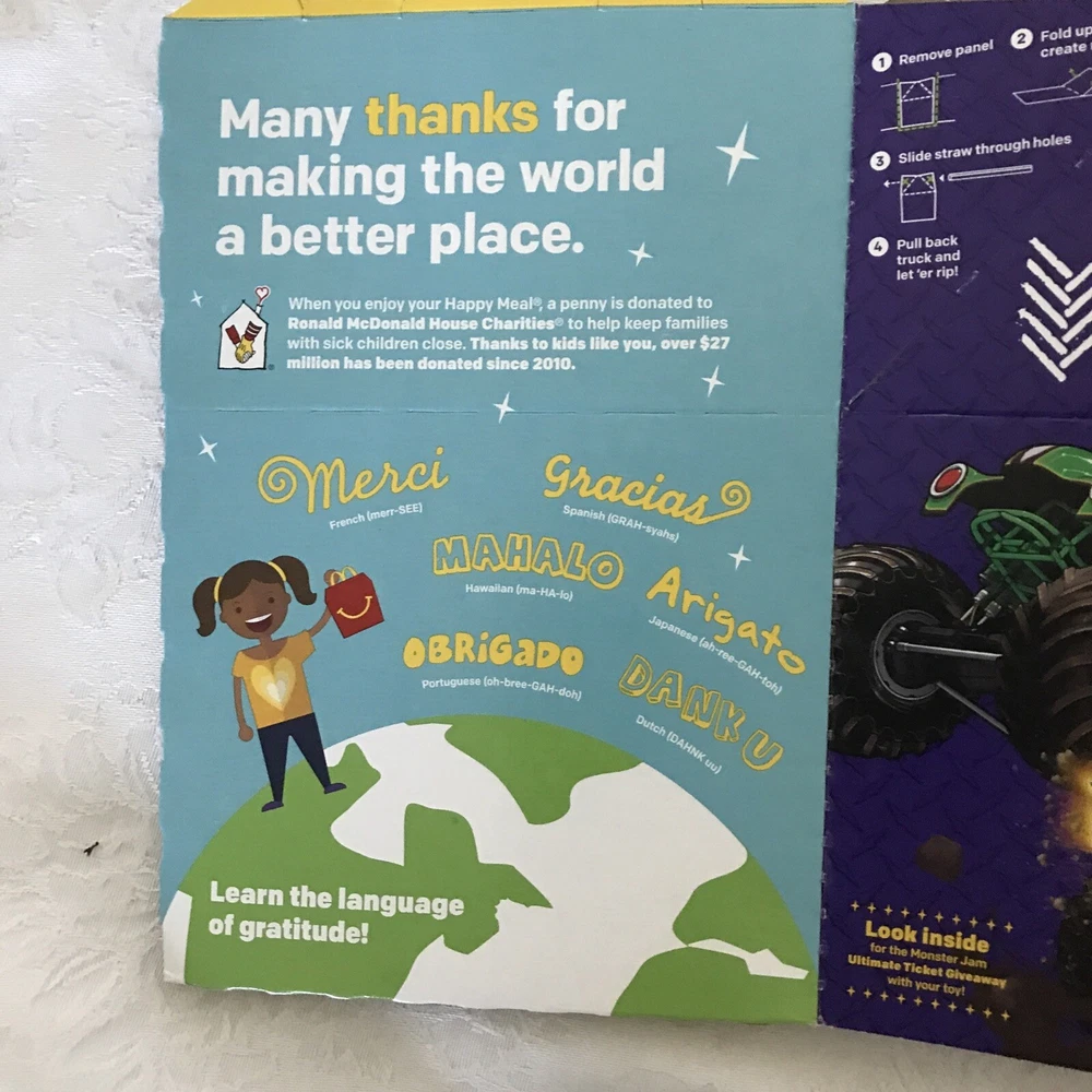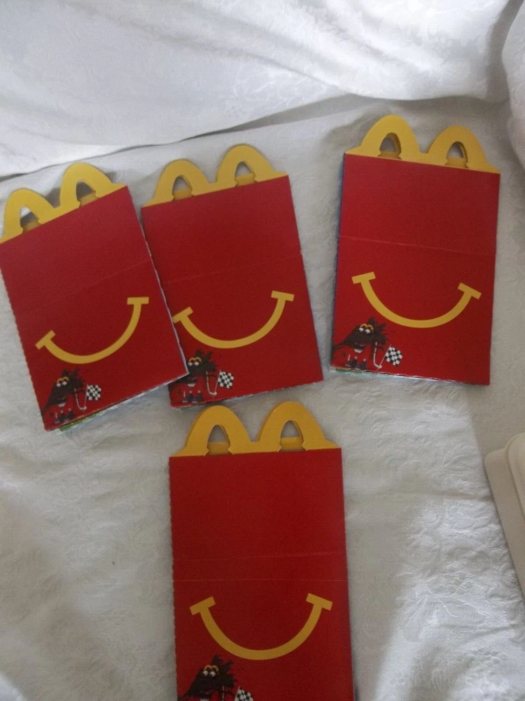 McDonald's Happy Meal boxes (4) Monster Jam grave digger & HELLO KITTY from 2015 lot of 4 identical Clean no smells or stains