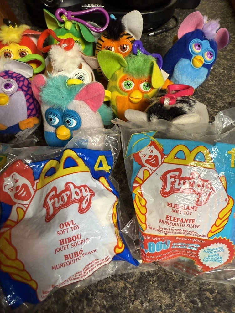 This set of 12 McDonald's Happy Meal Furby plush keychain clip toys from the year 2000 is a must-have for any collector or fan of the beloved character family.