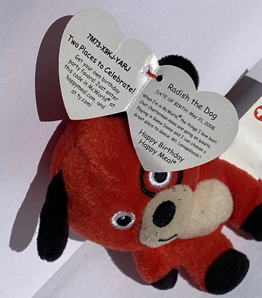 McDonald's TY Teenie Beanie- Radish the Dog 2009 3.5" Red Plush Toy