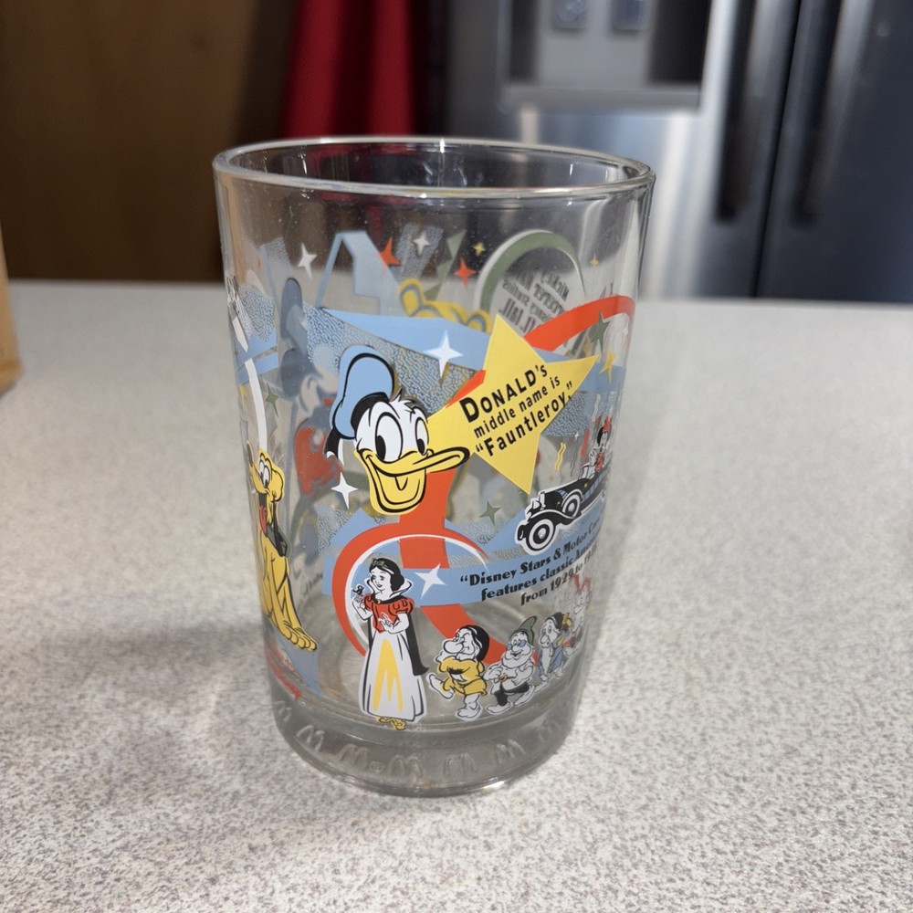 This product is a McDonald's Walt Disney World 100 Years of Magic glass cup featuring Mickey Mouse. Released in 2001 as part of a collectible set, this 16 oz cup celebrates the iconic character and theme of Disney's magic. With its contemporary design and official Disney franchise, this glass cup is a unique and nostalgic piece for fans and collectors alike. Good condition (see photos)