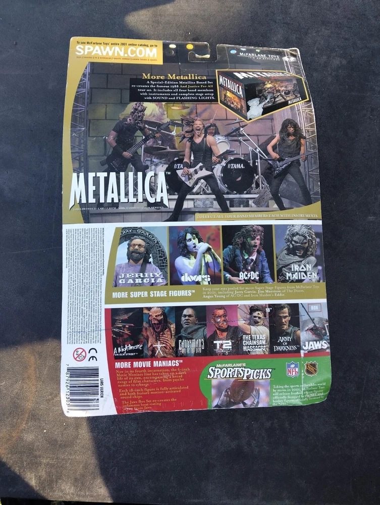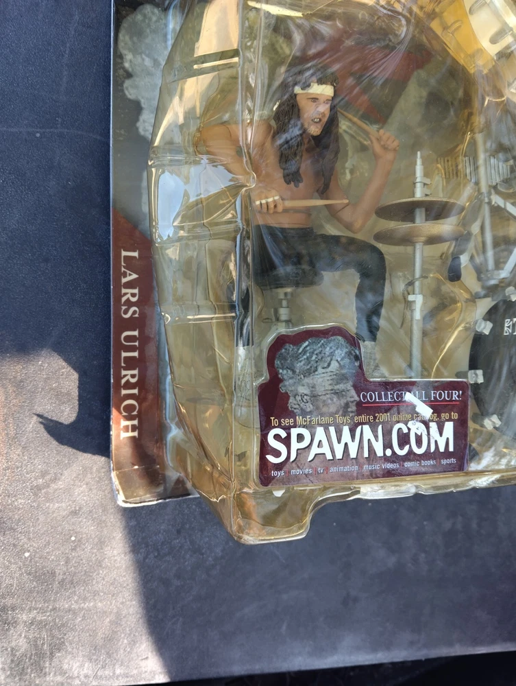 This McFarlane Toys Spawn.Com Metallica action figure features Lars Ulrich, the iconic Metallica drummer. The figure is made of plastic, metal, and acrylic materials, and is designed at a 1:12 scale. It comes boxed and is an original, licensed reproduction from the year 2001. The figure is perfect for fans of Metallica and collectors of action figures. It is graded 95+ and is suitable for ages 13+. The figure depicts Lars Ulrich in his concert outfit and is a great addition to any collection.