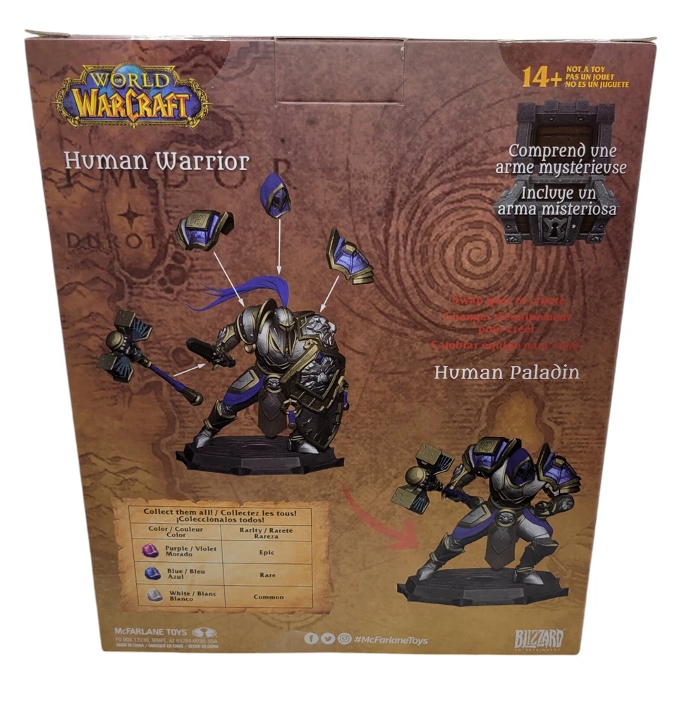 This McFarlane Toys World of Warcraft Human Warrior Paladin action figure is a must-have for any fan of the game. The 1:12 scale figure is a licensed reproduction and comes in a collector's edition box. It features intricate details and multicolor plastic material. The figure is a Common model and is perfect for display or play. It includes a mixed lot of items and has a packaging size of 9 inches in length, 8 inches in width, and 6 inches in height. The figure is based on the Blizzard animated studio's Warcraft movie and TV show. It is suitable for ages 14 and up and is a great addition to any World of Warcraft collection.