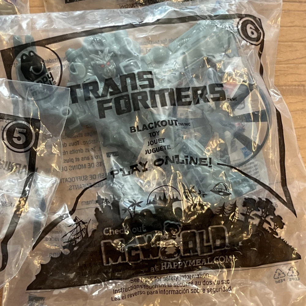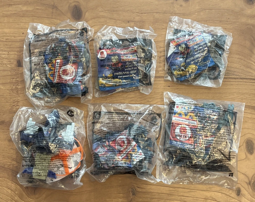 Mcdonalds Toys TRANSFORMERS Optimus Prime Megatron Cyclonus Ironhide Blackout One duplicate. Please see pictures for minimal wear to packaging from storing, one has sticker residue. Check out our store, Shiloh Trading Post, for more of the things you like! We combine shipping. Thank you for shopping at Shiloh :)