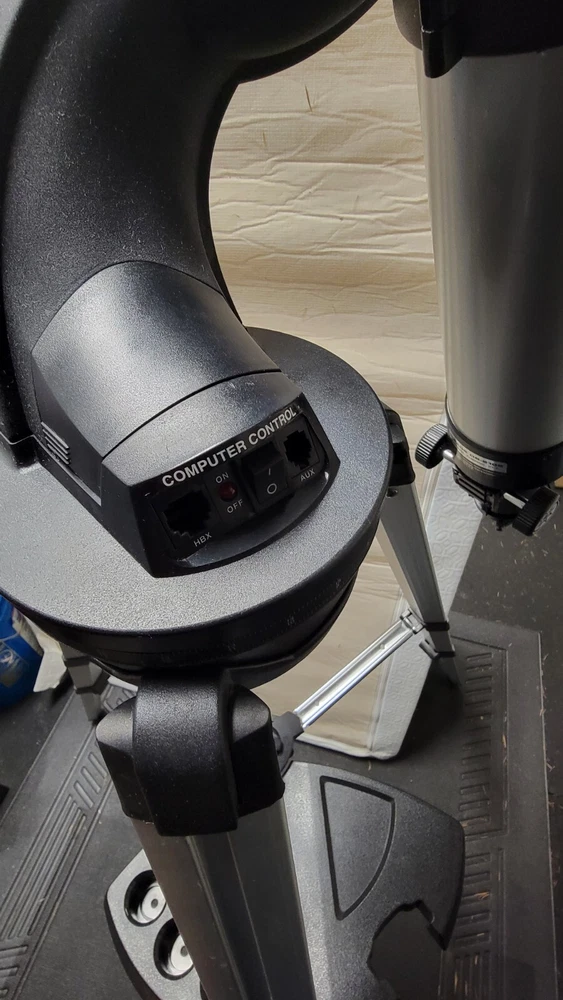 The Meade Autostar DS-2102 is a digital telescope with a motorized base and a built-on StarPointer finderscope. It comes with a tripod for stable viewing and tracking of celestial objects. The telescope features fully coated lenses for clear and bright images, making it a great option for stargazing enthusiasts. Please note that this particular listing is for parts only. Selling as is in pictures. When tested only problem present seemed to be no automatic base rotation. Only motorized hinging at arm worked.