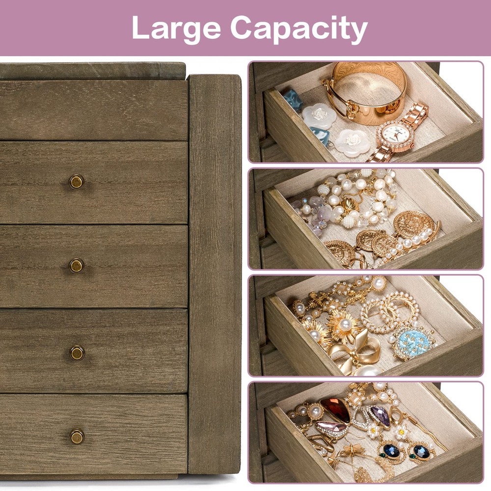 Meangood 5-Layer Wood Jewelry Box with Mirror and 4 Drawers Organizer for Women