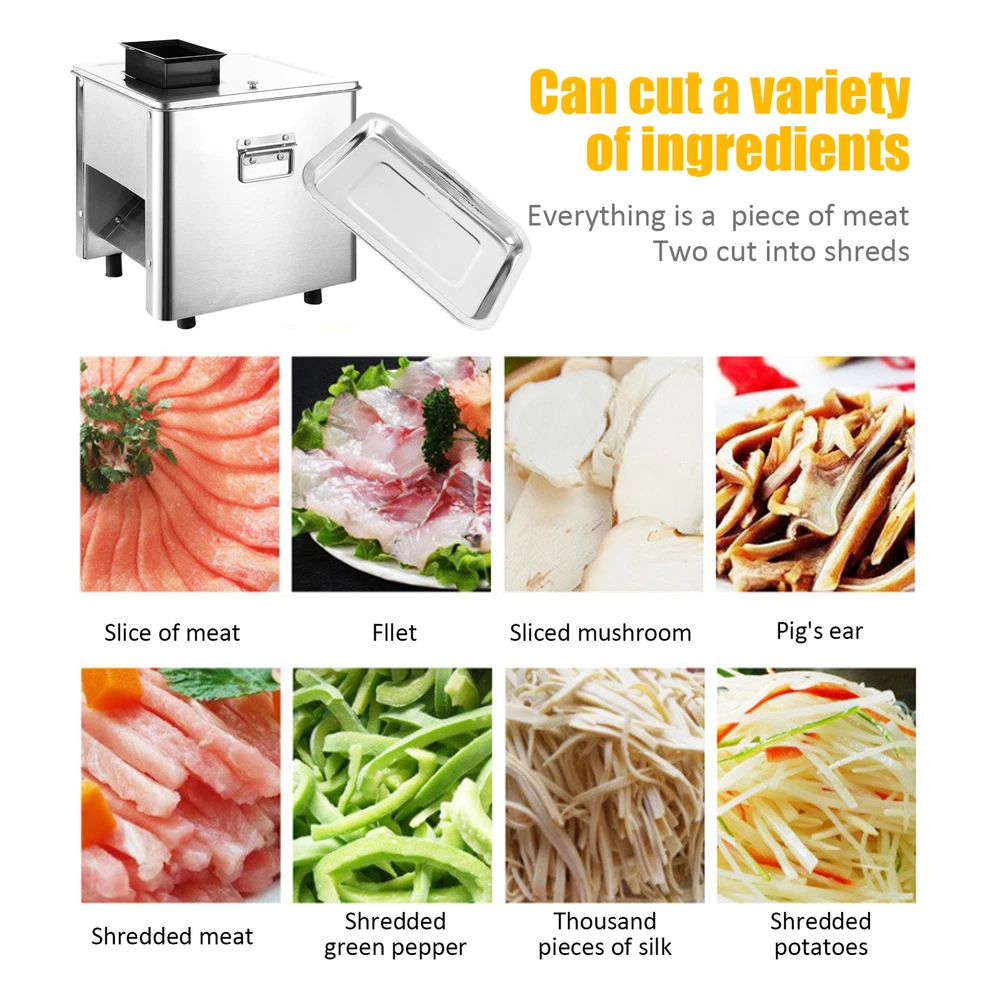 Store category Sign Up Now ! You may also like Product Description Bullet Points: Enhanced Production Capacity: An impressive production capacity of up to 150kg/h ensures maximum efficiency when slicing meat. The removable cutter allows for easy cleaning, and the 110X70mm feed inlet accommodates various sizes of meats, making this slicer a must-have for busy kitchens. Extraordinary Durability: Experience consistent slicing with our stainless steel meat slicer, designed to reduce heat dissipation and powered by a robust copper motor for enduring reliability. Powerful Cutting Capability: Achieve effortless and efficient slicing with our electric meat slicer, equipped with an 850W motor for a notable 1400 RPM and long-lasting durability. Convenient Slicing: Achieve versatile cuts of well-maintained pork, beef, lamb, boneless fish fillets, and vegetables without any hassle on our electric meat slicer. Slice and prepare various culinary creations, but note that it is unsuitable for freezing meat and meat with bone. Simplified Operating: Equipped with high carbon steel cutters, this electric meat slicer ensures effortless precision cutting. The enlarged and widened cutter body is designed for direct water cleaning and easy part replacement, making maintenance a breeze. This Commercial Meat Slicer delivers constant performance with a strong driving force and a widely used design. Its replaceable enlarged and widened cutter can be easily removed for cleaning, ensuring efficient and safe food preparation. Specifications: Product name: Commercial electric meat slicer Model: US standard 3.5 mm Product size: about 32x30x35cm/12.6x11.81x13.78 inches Packaging size: about 33x33x37cm/12.99x12.99x14.57 inches Packaging weight: about 18000g Features: 1. Replaceable enlarged and widened cutter, high carbon steel cutter, sharper 2. Stainless steel shell, beautiful and strong 3. Can dice, chop, shred, can cut a variety of ingredients, easy to use 4. Pure copper motor, strong performance, stainless steel meat slicer is equipped with high-performance motor; constant performance, fast heat dissipation 5. The body of the meat slicer can be directly washed with water Packing List: 1* Electric meat slicer 1* Stainless steel plate 1* Feed bin 4* Footpads Note: Due to different lighting and screen settings, the item color may be slightly different from the picture. Due to different manual measurements, please allow a 1-2cm difference in size. Payment Delivery details Terms of sales About us Feedback & DSRs Payment Before you palce an order, please kindly make sure that you have a paypal account. We accept PAYPAL payment only. Payment should be completed within 2 days after auction closed, or unpaid dispute will be filed for an closing auction. An unpaid case will be filled after 4 days. Delivery details We ship to your eBay address. Each package will be shipped to US by UPS Regular Parcel with tracking number. Please check your shipping address carefully before checkout, it can't be changed if order completed. All items will be shipped within 1-2 business day upon receipt of payment.Orders placed on weekend will be shipped within 3 days. If you do not receive your item in 7-10 business days.please contact us immediately for further assistance. We will be responsible for any damages or losses incurred in the shipping process. About us We maintain high standards of excellence FIVE STAR and strive for 100% customer satisfaction! Positive Feedback is very important to us. We hope that you contact us immediately Before you give us neutral or negative feedback, so that we can satisfactorily address your concerns. We promise to offer the lowest price and high quality produce. Our working time: From Monday to Friday(9:30 am to 18:00pm), we don't working on holidays ,hope you can understand and know that , thank you. Please always talk to us via ebay Message. We appreciate your business and look forward to growing our e-Bay sales with satisfied customers. Feedback Contact us If you have any questions, please feel free to contact with us by ebay Message during our business hours ( 9:30a.m. to 5:30 p.m.), or email us through eBay, we will try our best to help you to resolve it. For any presale or after-sale questions,please do feel free to email us! Due to the time difference, each email will be replied within 1 working day,and weekend will be delayed a bit. Feedback