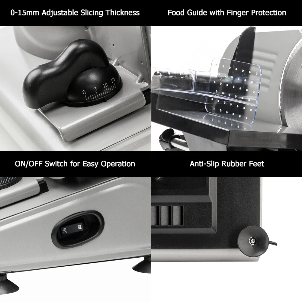 listing template Visit our store Sigh up for email Meat Slicer, 150W Electric Deil Food Slicer, Cheese Fruit Vegetable Bread Cutter Introductions: Make your kitchen more functional with the Food Slicer. It's a simple way to slice your own meats, cheeses, breads, vegetables and fruit quickly and easily at home. With sleek design food slicer pairs nicely with just about any kitchen decor. It has a specialized curve design that allows for easy slice removal. A thickness-control knob makes selecting your cut thickness simple. The large, multi-purpose 7.5" stainless steel blade handles a wide range of food sizes and types. Remove the blade for effortless clean-up and maintenance. A strong 150W motor offers plenty of power. Specifications: 1. Color: Silver 2. Power: 150W 3. Voltage: 120V/60Hz 4. Blade Diameter: 7.5" / 190mm 5. Detachable Blade & Detachable Carriage Shaft 6. Adjustable Thickness Knob: 0-15mm 7. Blade Material: Steel 8. Overall Dimensions: (14.4 x 11.0 x 9.7)" / (36.5 x 28 x 24.5)cm (L x W x H) 9. Weight: 11lbs / 5kg 10. Transmission Mode: Belt 11. Material: Stainless Steel 12. Brand: ZOKOP Package Includes: 1 x Electric Meat Slicer 1 x Instruction Features: 1. Perfect for preparing lunches, deli trays and buffet food for entertaining, party etc.. 2. Slicer pays for itself by allowing you to buy delis meats in bulk, slicing it when needed and then freezing the rest which saves time and money 3. Sliced meat exit behind the machine for sliced meat sliding out quickly 4. Numerical scale knob makes the adjustable plate to move back and forth and adjust the thickness of meat up to the 5/8 inch thick 5. 7.5" steel blade easily cuts through tough and frozen meats 6. Spiked meat holder maintains a firm grip for controlled slicing 7. Suction cup feet keep the unit stable 8. Slicing beef, venison, mutton, turkey, cheese, ham, bread, vegetable, fruit and other food You might like this more>> 6-Tier Bamboo Bookshelf Adjustable Storage Shelf Rack $49.99 Professional Cello 4/4 Full Size BassWood Set with Bag $148.99 Stainless Steel 4 Tier Steamer Cooker Steam Pot Kitchen Food $39.29 110 LB x 0.1oz All-In-One Digital Postal Shipping Scale 50kg $22.79 2Pack 10000LM LED Zoomable Flashlight Torch Lamp Light $9.99 Mini Exercise Bike Desk Pedal Bicycle $35.14 Shipping Policy 1. Ship worldwide from New Jersey by reliable shipping companies -- USPS, UPS, FEDEX, DHL, etc., and only to VERIFIED PAYPAL ADDRESS. Transport Delivery ETA. Package handling only takes 1 business day at our warehouse, so please make sure entering correct payment and shipping information before checking out. Once your payment is completed, we are not going to accept any more changes to your order. 2. International Buyers – Please Note: a. Import duties, taxes and charges are not included in the item price or shipping charges. These charges are the buyer's responsibility. b. Please check with your country's customs office to determine what these additional costs will be prior to bidding/buying. 3. Please check your shipping address carefully before checkout, it can't be changed if order completed. 4. Orders placed on weekend will be shipped within 2 days.Notification of shipment with tracking number will be sent to buyers. 5. Standard shipping: 2-7 business days Expedited Shipping: 2-3 business days One-day Shipping: 1 business day International shipping: Varies 6.Ship within 1 business day once payment completed. Notification of shipment with tracking No. will be sent to buyer. 7.We offer discounts for combine shipping. Please contact us first if you need combine shipping, and an invoice with discount will be sent to you. 8.Please allow 5 business days for delivery to US destinations on any eBay orders and 14 business days for delivery to any International destinations. We highly recommend our buyer choose priority/expess mail for international delivery which is much more stable. Return Policies 1. Refunds given only if item DOA and cannot be replaced via PAYPAL . If so, Please contact us with 5 days since you receive the item and and return to us within 30 days from the delivery date for exchange or refund. 2. If you need return, please contact our customer service representative, let us know the detailed problem and send us some pictures for confirmation. Payment Payment should be sent within 8(EIGHT) days of auction closing. Feedback If you are dissatisfied for any reason, please do not be quick to leave negative/neutral feedback. We work hard to make sure EVERY CUSTOMER 100% SATISFIED and resolve any problem for you. Work Time Work Time: Monday to Saturday About Us | Newsletter| Feedback| Contact Us Copyright © 2021 Yallstock. All rights reserved. 无标题文档 Meat Slicer, 150W Electric Deil Food Slicer, Cheese Fruit Vegetable Bread Cutter Introductions: Make your kitchen more functional with the Food Slicer. It's a simple way to slice your own meats, cheeses, breads, vegetables and fruit quickly and easily at home. With sleek design food slicer pairs nicely with just about any kitchen decor. It has a specialized curve design that allows for easy slice removal. A thickness-control knob makes selecting your cut thickness simple. The large, multi-purpose 7.5" stainless steel blade handles a wide range of food sizes and types. Remove the blade for effortless clean-up and maintenance. A strong 150W motor offers plenty of power. Specifications: 1. Color: Silver 2. Power: 150W 3. Voltage: 120V/60Hz 4. Blade Diameter: 7.5" / 190mm 5. Detachable Blade & Detachable Carriage Shaft 6. Adjustable Thickness Knob: 0-15mm 7. Blade Material: Steel 8. Overall Dimensions: (14.4 x 11.0 x 9.7)" / (36.5 x 28 x 24.5)cm (L x W x H) 9. Weight: 11lbs / 5kg 10. Transmission Mode: Belt 11. Material: Stainless Steel 12. Brand: ZOKOP Package Includes: 1 x Electric Meat Slicer 1 x Instruction Features: 1. Perfect for preparing lunches, deli trays and buffet food for entertaining, party etc.. 2. Slicer pays for itself by allowing you to buy delis m