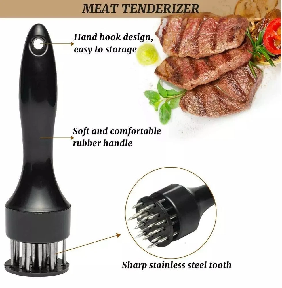 Free eBay listing template designed by dewiso.com Meat Tenderizer Tool 21Needles Stainless Steel for Tenderizing Kitchen Tool USA High Quality: Made Of Quality Food Grade Stainless Steel, Perfect Polishing, 21 Needles Prong Construction With ABS Plastic Handle Easily To Operate. Keep Fresh Meat, Seasoning Can Be Thoroughly And Quickly Into Meat Tenderizing Meat Quickly :Stainless-Steel Prongs Break Down Tough Meat Fibers And Useful For Piercing Meats Before Marinating, Improve The Taste And Tenderness Of Meat The Meat Tenderizer Needle Effectively Shorten The Marinating And Cooking Time, You Can Get Up And Running With This Tenderizer In Just Minutes And Make It More Tasty Suitable for Any Kind of Meat,The meat tenderizer features very sharp Steel nails which make it ideal especially for the meat like venison, pork, beef, veal, fowl and even poultry and fish. Having a compact and lightweight design, you can comfortably hold it in your palm. Safe to use - Safety-Lock Prevents Accidents; Safety Storage Cap Included Easy to Clean So You Can Relax And Get Professional Kitchen Results With Peace Of Mind Features: Type: Needle Meat Tenderizer Material: Stainless Steel Colour: Black Size: 19x5cm Package Includes: 1-10pcs x Meat Tenderizer or 1pc x Meat Tenderizer Buyer Note: If you are satisfied with our service, we appreciate you leaving us a positive feedback and 5 star rating review! Your opinion is important to the success of our business. If you are not satisfied with the product or have not received the product for more than 35 days, please contact us to resolve, we will do our best to solve. We are sure to come up with a satisfactory solution. Please contact us first before leaving cold feedback or good feedback of 1-3 stars and opening the case. We'll do our best to solve your problem. Because we believe that everything can be solved through communication. Thank you very much! Contact us We can be contacted at any time through eBay messages if you have any questions, comments or product requests. We will respond to you within 24 hours and do our best to help you out! We encourage our customers to contact us with any questions or concerns! We'd like to be sure you are completely satisfied with your purchase. Cheapsy*King
