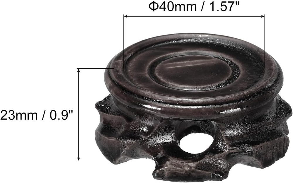 MECCANIXITY Wooden Stand Holders Displays Base 40mm Diameter Black for black Product Details Shape: Round Base Type: Pedestal Assembly Required: No Number of Levels: 1 Special Feature: Retro Style, Delicate Wooden Design Manufacturer: MECCANIXITY Package Dimensions: 4.41 x 3.11 x 1.1 inches Item Weight: 1.76 ounces Item model number: mea220518ee0517 Finish types: Polished Batteries required: No Color: black Material: Wood, Stone Brand: MECCANIXITY Item Weight: 0.05 Kilograms Finish Type: Polished The wooden stands are made of wood, suitable for displaying items, such as vases, ornamental bowls, stones, and other crafts and collectibles. Inner Diameter: 40mm/1.57 inch; Height: 25mm/0.98 inch; Color: Black. The surface of the display stand base is beautiful and smooth, full of retro style. The wooden round base is very delicate, which enhances the taste of home. Just put your vases or other flat bottom craft item on the base. All size is measured manually, please allow +/-0.1 inches error.