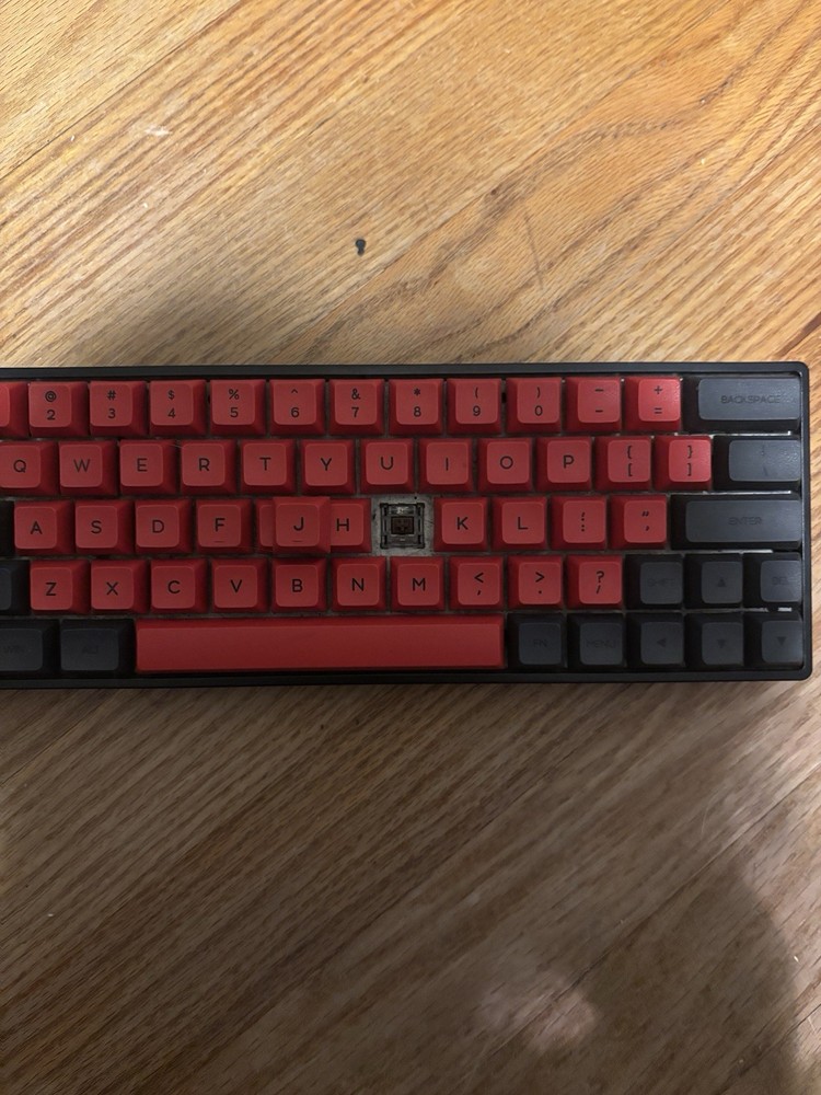 The Mechanical Gaming Keyboard by Instago features brown switches, red and grey keycaps, and a sleek black design. This 60% keyboard layout includes a QWERTY standard layout, making it familiar and easy to use for gaming enthusiasts. With a wired connectivity option and a charger included, this keyboard offers a plug-and-play experience for gamers looking for speed and reliability. Made in China, this English-language keyboard is designed for optimal performance and comfort during long gaming sessions. This keyboard is fairly used but still a really a good keyboard for Esports titles like fortnite The weight of this item is estimated
