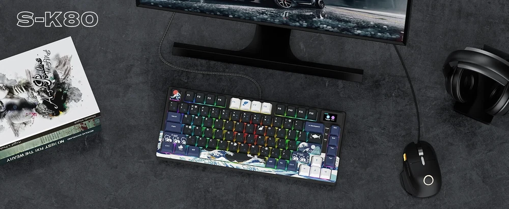 Specifications: Total Keys: 81 Keys Material: PC Plastic Keycaps: Dye Sublimation PBT Pudding Keycaps Feature: OLED Screen Keyboard Keyboard Layout: US ANSI 75% Layout Mounting Style: Gasket Mounted Keycap Printing Method: Dye Sublimation Keycap Profile: ASA profile (Raindrop)/Cherry Profile (Kanagawa) Connection Type: Wired Interface: USB Type-C Compatible Operating Systems: Windows/macOS Hot-Swap: Support Weight: 900g Including: Keyboard*1 Keycap Puller*1 Switches Puller*1 Manual*1 Pay attention to: 1. Please allow a little size error due to manual measurement. 2. Please be reminded that due to lighting effects and monitor's brightness / contrast settings etc.The color tone of the website's photo and the actual item may be slightly different. 3. Because we send too many packages, if some buttons lost or damaged on the way, please leave Send us a message and we will send the lost or damaged buttons to you as soon as possible. Don't worry, don't leave feedback immediately.