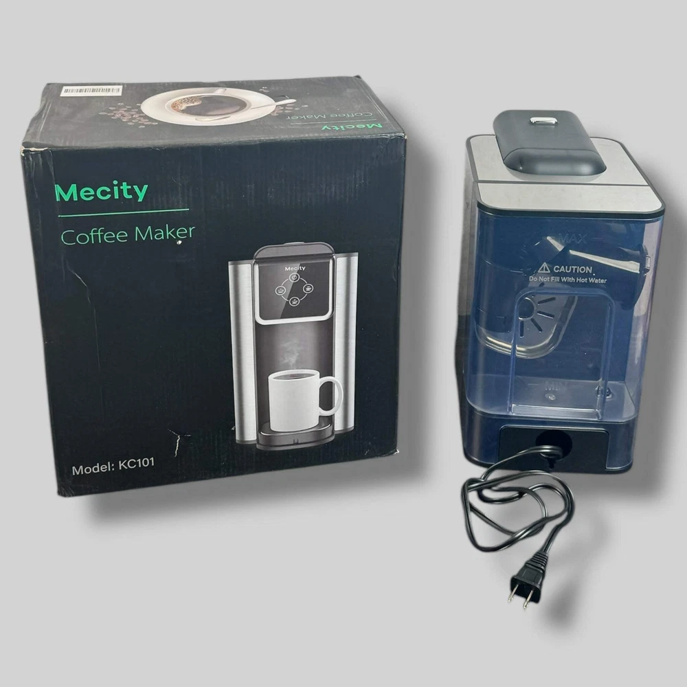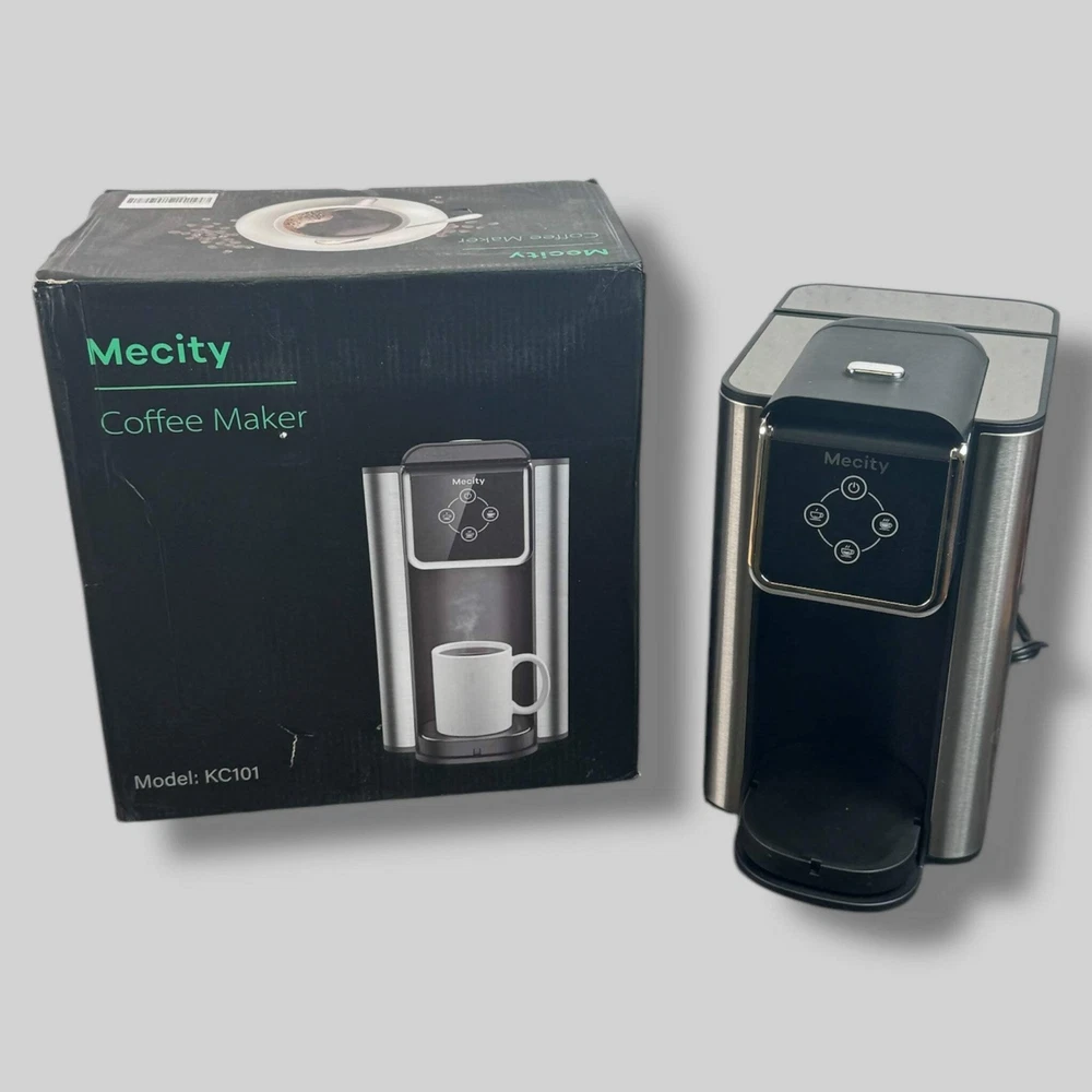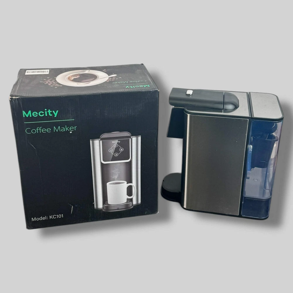 Mecity | 3-in-1 Single Serve Coffee Maker | Tested Unit/Open Box | Excellent Condition Mecity 3-in-1 Single Serve Coffee Machine is a versatile coffee maker compatible with K-Cup capsules, ground coffee, and instant coffee. With 6, 8, and 10oz brewing options, it allows you to customize your cup size with ease. The removable 50oz water reservoir ensures multiple servings before needing a refill.This 1150W coffee maker heats up quickly, making it perfect for busy mornings. The sleek black design complements any kitchen, while the user-friendly interface ensures a hassle-free coffee experience.Condition: Like New in Box. This coffee maker is in excellent condition with minimal signs of prior use and includes its original packaging.Product Details:Material: Plastic, stainless steel componentsCapacity: 50oz water reservoirPower: 1150WFeatures: Compatible with K-Cups, instant coffee, and ground coffeeColor: Black Mecity | 3-in-1 Single Serve Coffee Maker | Tested Unit/Open Box | Excellent Condition Mecity 3-in-1 Single Serve Coffee Machine is a versatile coffee maker compatible with K-Cup capsules, ground coffee, and instant coffee. With 6, 8, and 10oz brewing options, it allows you to customize your cup size with ease. The removable 50oz water reservoir ensures multiple servings before needing a refill. This 1150W coffee maker heats up quickly, making it perfect for busy mornings. The sleek black design complements any kitchen, while the user-friendly interface ensures a hassle-free coffee experience. Condition: Like New in Box. This coffee maker is in excellent condition with minimal signs of prior use and includes its original packaging. Product Details: Material: Plastic, stainless steel components Capacity: 50oz water reservoir Power: 1150W Features: Compatible with K-Cups, instant coffee, and ground coffee Color: Black × × × × × Buy now and save! Shipping info Click the Shipping & Payments tab above the listing description for more info Click the Shipping & Payments tab above the listing description for more info! Additional delivery notes PICK UP OPTION Sorry, our items are NOT available for pick-up. PAYMENT Immediate payment is required upon selecting "Buy It Now" or upon checking out through the cart. We accept payment via U.S. PayPal accounts and all Major Credit Cards, Debit Cards & Google Pay. We are legally required to collect sales tax in those states and localities where we maintain a physical presence (nexus). The applicable amount of sales tax charged to an order will be calculated based on the shipment destination's state and local sales tax laws. Thank you for shopping with us on eBay! Additional Information No additional information at this time Ask seller a question You might also like Egg Wooden Serving Board - Threshold Hello Gorgeous Mug | 15 Ounce Pier 1 Reflections Crackle Goblet | 2 Pack Farberware 3-Piece Wood Cutting Board Set | Bamboo Meal Prep & Serving Contact To contact our Customer Service Team, simply click the button here and our Customer Service team will be happy to assist. Ask seller a question © Kitchen Switchen Shipping & Payments Click the Shipping & Payments tab above the listing description for more info Payment Accepted Payment Methods Immediate payment is required upon selecting "Buy It Now" or upon checking out through the cart. We accept payment via U.S. PayPal accounts and all Major Credit Cards, Debit Cards & Google Pay. We are legally required to collect sales tax in those states and localities where we maintain a physical presence (nexus). The applicable amount of sales tax charged to an order will be calculated based on the shipment destination's state and local sales tax laws. Thank you for shopping with us on eBay! Returns Returns are accepted Items must be returned within 30 days of the auction ending Buyer will pay for return shipping. eBay integration by