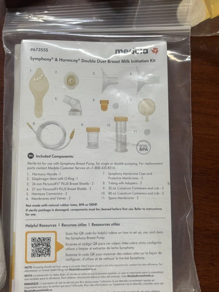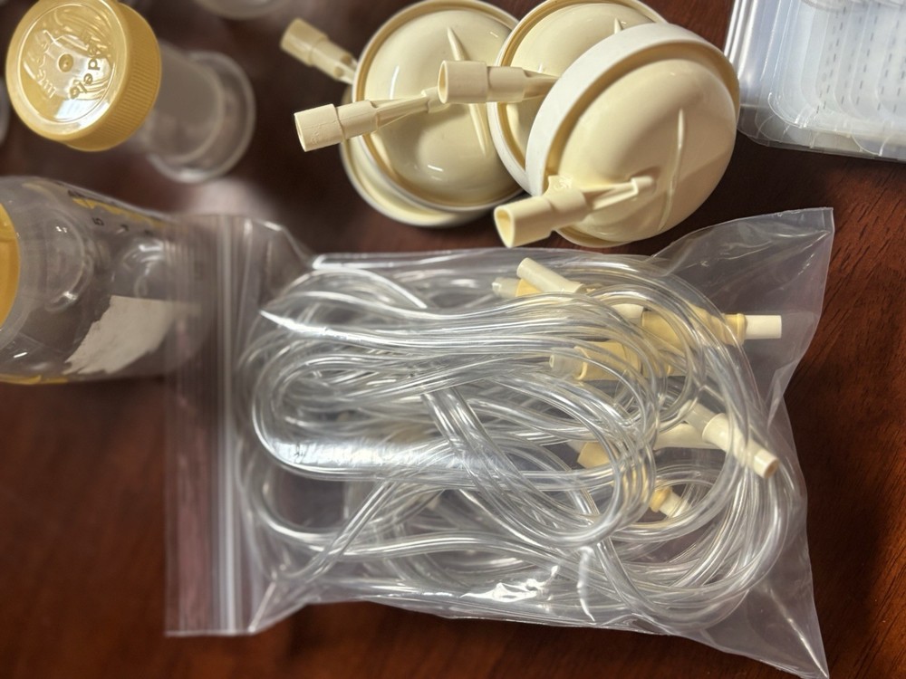 Feature : The Pump In Style Advanced Breastpump Starter Set is part of Medela's patented 2-Phase Expression technology pump family. Feature : Adjustable speed/vacuum control, Helps you choose your most comfortable setting. Medela's patented 2-Phase Expression® technology is Proven to get 18%* more milk when double pumping. One-touch let-down button: Lets you toggle between Stimulation and Expression phases for more efficient pumping sessions. INCLUDES: Power supply adapter AC 110v; Pump in Style tubing (3 NEW tube sets); PersonalFit breastshields (4) four medium (24 mm) & (4) four large (27mm); (8) connectors; 6 valves with 6 membranes, as well as an additional pack of membranes. 2-5 oz/150 mL breastmilk bottles w/lid & nipple: (11) storage containers w/ lids and two manual hand pumps. [Retail Price: $199.99 for just the pump machine] ***BONUS: Includes Over 100 Medela milk storage bags for freezing your liquid Gold!!***