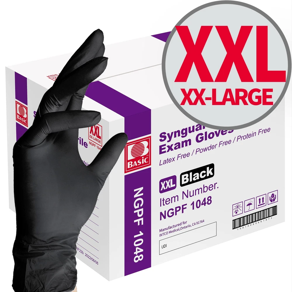 gtin13: Does not apply Material: Rubber Material Type Free: Powder Free Item Form: Individual Fit Type: Relaxed Pattern: Gloves Material Feature: Latex-Free, Powder-Free, Durable, Tactile Feedback Weight: 12.55 Pounds Hand Orientation: Right Net Content Area: 1000.0 Unit Count: 1000.0 Recommended Uses For Product: Kitchen,Medical Size: Xx-Large (1000) UPC: Does not apply Reusability: Disposable Color: Black (Xx-Large 1000) Model Name: Synguard Nitrile Black Examination Gloves Import Designation: Imported Included Components: Occupational Health & Safety, Ergonomic-Supports Part Number: Ngpf-1048 Closure Type: Pull On Item Package Quantity: 1 Fabric Type: 100% Nitrile Department: Unisex-Adult Type: Does not apply Net Content Count: 1 Age Range Description: Adult Package Dimensions LxWxH: 12.5x10.25x9.5 Inches Style: Xx-Large Brand: Does not apply Model Number: Ngpf1048 Is Waterproof: True