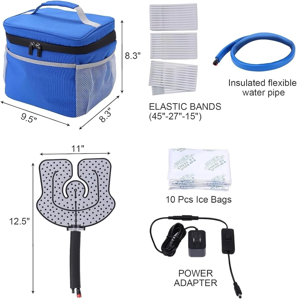 【Cold Therapy Machine】This Cold Therapy Machine provides a continuous circulation of cold water to effectively relieve pain and swelling caused by surgery, trauma, exercise, arthritis, sprains, tendonitis, and other joint and muscle problems. With cold therapy can slow down the blood flow to the injured area, allow the wound to heal faster. 【9 Quart Capacity - Long Lasting Ice Therapy】The Cryotherapy Freeze Kit System includes a 9-quart cooling water tank which holds 6 frozen water bottles. Typically, the larger the cooling bucket, the more ice it holds, which reduces the frequency of adding ice. This means a longer period of pain relief cold therapy between ice additions. 【Multifunctional Cold Therapy Pad】The flexible cold therapy pad is made with a unique process that ensures even distribution of ice water and smooth flow. Perfect for ankle, knee, leg, hip, elbow, shoulder and arm. Three elastic straps hold it securely in place where you need it. 【Quiet Pump Design】The Ice Therapy System is designed to operate silently, ensuring a peaceful and undisturbed experience even when used at rest or at night. A relaxing environment is essential for effective pain relief. The long-handled thermometer makes it easy to keep track of the temperature inside the ice therapy bucket. 【Portable & Insulated】The Frozen Ice Circulation Therapy Machine is compact and portable, allowing you to use the product wherever you go. The collapsible cold therapy tank is made of double-layer insulation, with an insulated connecting hose to ensure a more stable and long-lasting cold therapy.