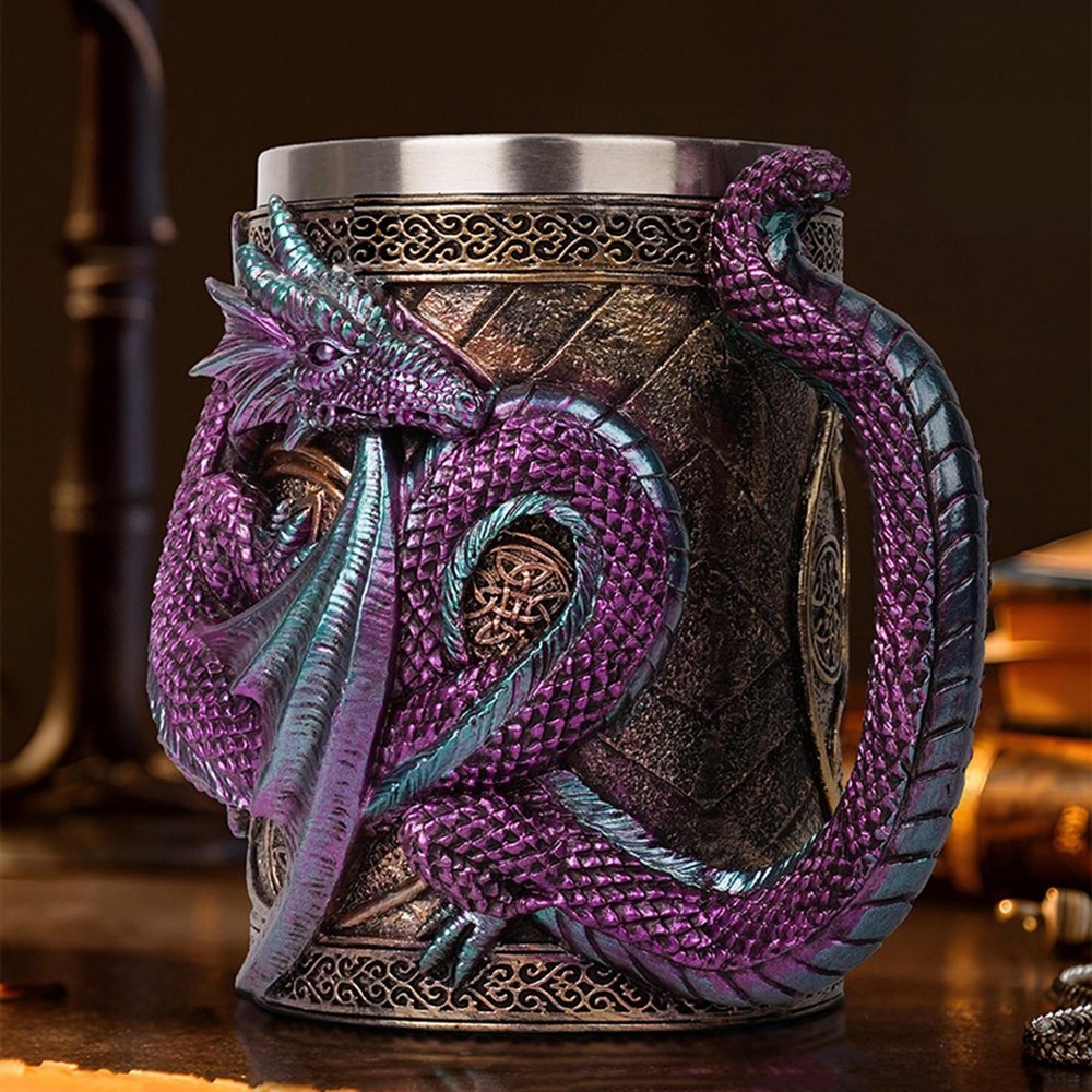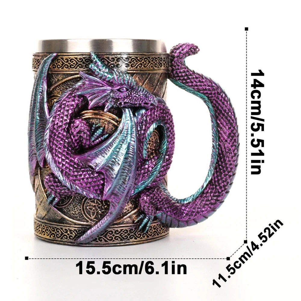 Medieval 3D Dragon Beer Mug Game Tankard Coffee Cup Wine Glass Mugs Gift Product Description Bullet Points: Unique Style: Admire the Gothic dragon relief on this Dragon Mug, featuring a majestic dragon on the wall with sturdy and dynamic wings yearning for freedom. Not Easy to Deform: Enjoy your favorite drink without worrying about wear and tear. This dragon mug is easy to clean and made of high-quality resin for long term use. The 304 stainless steel inner liner ensures safe drinking, while its stunning appearance adds a touch of elegance to any occasion. Themed Party Favorite: This beautiful dragon embossed mug is perfect for use at game night, showing your guests your exquisite taste and love for themed parties. It is not only a drinking cup, but also a work of art that can serve as a decoration for your home. Comfortable Grip: The dragon mug features a creatively designed C shaped handle, making it easy to grip and hold. Sip your favorite hot beverage comfortably from this beautifully shaped mug, giving you a taste of fantasy with every drink. Widely Used: This dragon mug is not only perfect for drinking beer, coffee, tea, or milk, but also great as a desk pen holder, an artist brush holder, a makeup stand, or a shelf decoration. Whether you're at work or relaxing, enjoy this unique dragon coffee mug that adds some fun to your day. Find a cool and interesting design for your morning coffee or tea? Our Dragon Coffee Cup is perfect for long term use and themed parties. Convenient to grip, this cup is great for everyday use or special occasions. Enjoy your favorite tea in style with Dragon Coffee Cup! Product name: Dragon Cup Product color: purple/red/green/black/gold/silver Product size: about 15.5x11.5x14cm/6.1x4.53x5.51 inches Product net weight: 818g Capacity: 568ml Product material: stainless steel + resin Pattern: Dragon Style: Magical/Medieval Craftsmanship: Hand spray painting Packing List: 1* Dragon Coffee Cup Payment 1.PayPal is a preferred Payment method. 2.You can make a Credit payment via Paypal.Paypal will let you use MasterCard,Visa to pay. 3.Payment should be completed within 3 days after auction closed, or unpaid dispute will be filed for an closing auction.An unpaid case will be filled after 4 days. Delivery details 1. We ship to many countries. 2. Delivery Time: Ship from China via Speedpak to US (takes 8-12 days) Ship from China via others shipping method to other countries (takes 15-60 days) 3. If you want to choose another address, please leave us a message on ebay.Please check your shipping address carefully before checkout,it can't be changed if order completed. Seriously promise:Refund or resend will be offered if item still not arrive in 7-10 business days. Just send us an email,we will give you a satisfied solution as soon as possible. Return policy 1.All item comes with Basic 3 Months Sellers Warranty, if item defective in 3 months,We will offer replacement without extra charger (including shipping fee) After we receive the defective item. If item Defective after 3 Month, Buyers can still send it back, We will contact suppliers or Manufactory for Warranty. Buyers Might Need pay the Shipping fee For resend the replaced item. 2.If item DOA(Dead of Arrival), Buyers can return it in 30 Days, we will replace it with new item after we receive DOA item. Please Contact us Before you sent the item back. 3.All item can be returned for exchange only. The buyer has responsibility for all return shipping including DOA or defective return. About Feedback When you receive the item and satisfied with the product, please leave positive feedback and 5 scores DSR. We will leave a 5 Scores DSR feedback for you. If, for any reason you are not satisfied with your purchase, please contact via Ebay Message and we will do our best to resolve it. Please don't leave neutral or negative feedback without any communition with .