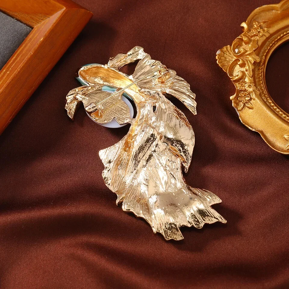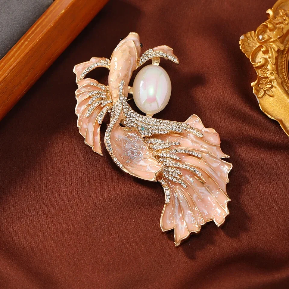 Medieval Vintage French Luxury Pearl Big Carp Goldfish Brooch Pin Accessories