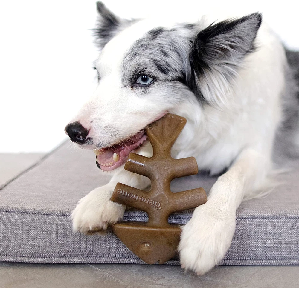 The Medium 4-Pack Dog Chew Toys are designed for aggressive chewers weighing 60lbs and under. Made in the USA from durable nylon, these dog toys come in a holiday-themed pack and are suitable for medium-sized breeds. The satisfaction guaranteed warranty ensures customer peace of mind, with the toys specifically recommended for active play, dental health, and both indoor and outdoor use. Each toy measures 7.5 x 3.75 x 7.25 inches and is brown in colour, providing a fun and engaging experience for dogs of all life stages.
