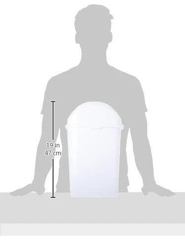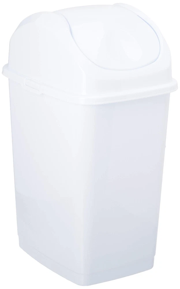 4.7 Gallons / 18 Liters High quality durable plastic Slim waste bin designed to fit narrow areas Center swing lid opens easily from both sides 2 handles for easy carrying