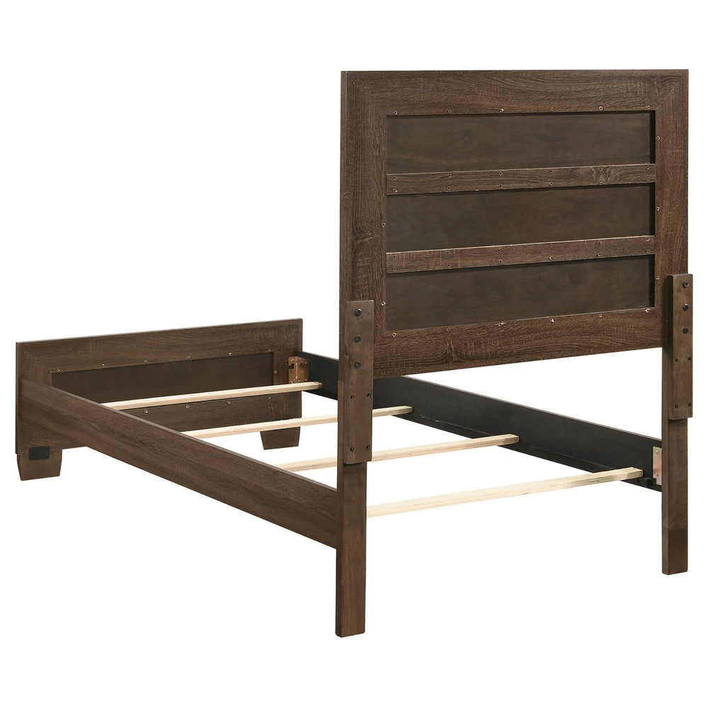 Brand Unbranded Item Length 79.53 Item Width 6.7 Item Height 3.55 Color Brown Frame Material Wood Type BED FRAME Compatible Mattress Size As described Diamond-ring-1 Simple life Medium Warm Brown Twin Panel Bed This bed embodies a transitional style, blending modern and traditional elements to create a clean and minimalist aesthetic The headboard features horizontal lines within its paneling, providing a visually restful appearance and adding subtle detail to the overall design With its warm brown finish, this bed offers versatility, seamlessly fitting into various neutral or pre-existing color palettes, making it adaptable to different decor styles The bed frame showcases carved panel molding, adding a touch of dimension and elegance to its design without overwhelming the overall minimalistic look Supported by tapered bracket feet, this bed frame gains a slight lift from the ground while maintaining stability, contributing to its transitional charm Romance Copy A minimalist look goes rustic with the handsome design of this transitional bed. An headboard with horizontal planks introduces personality, as a paper veneer cover with a warm brown finish offers a dramatic tone and easy-care convenience. Product Details Set includes One (1) bed Twin bed dimensions 54.25 inches high x 56.25 inches wide x 76 inches long Finish Color Medium Warm Brown Materials Asian hardwood, paper veneer and tropical wood Tested static weight 600 lbs Box spring Required Item Specifics Brand Unbranded Item Length 79.53 Item Width 6.7 Item Height 3.55 Color Brown Frame Material Wood Type BED FRAME Compatible Mattress Size As described Payment Returns Diamond-ring-1 Simple life DESCRIPTION PAYMENT SHIPPING RETURN POLICY CONTACT US Shop Category Store Home Other Hot Item Delivery New List Item Help & Info Payment Policy Shipping Policy Return Policy FAQ About Us Medium Warm Brown Twin Panel Bed This bed embodies a transitional style, blending modern and traditional elements to create a clean and minimalist aesthetic The headboard features horizontal lines within its paneling, providing a visually restful appearance and adding subtle detail to the overall design With its warm brown finish, this bed offers versatility, seamlessly fitting into various neutral or pre-existing color palettes, making it adaptable to different decor styles The bed frame showcases carved panel molding, adding a touch of dimension and elegance to its design without overwhelming the overall minimalistic look Supported by tapered bracket feet, this bed frame gains a slight lift from the ground while maintaining stability, contributing to its transitional charm Romance Copy A minimalist look goes rustic with the handsome design of this transitional bed. An headboard with horizontal planks introduces personality, as a paper veneer cover with a warm brown finish offers a dramatic tone and easy-care convenience. Product Details Set includes One (1) bed Twin bed dimensions 54.25 inches high x 56.25 inches wide x 76 inches long Finish Color Medium Warm Brown Materials Asian hardwood, paper veneer and tropical wood Tested static weight 600 lbs Box spring Required Item Specifics Brand : Unbranded Item Length : 79.53 Item Width : 6.7 Item Height : 3.55 Color : Brown Frame Material : Wood Type : BED FRAME Compatible Mattress Size : As described Payment Returns All rights reserved.