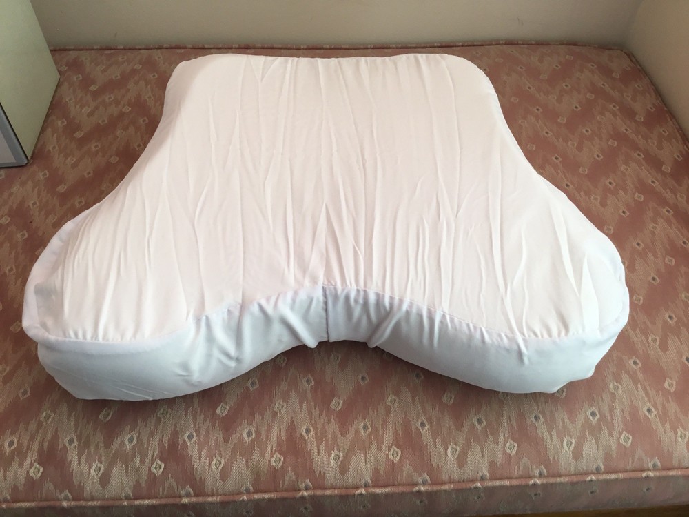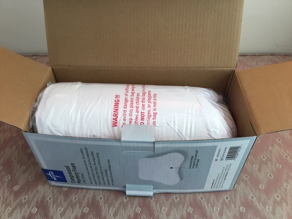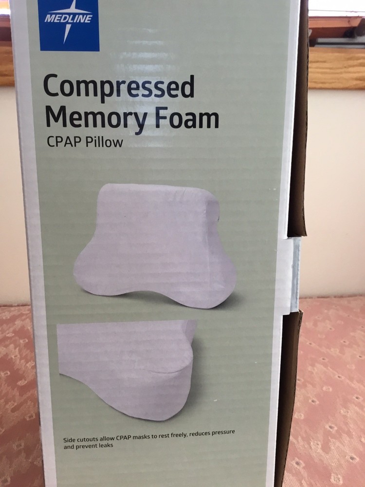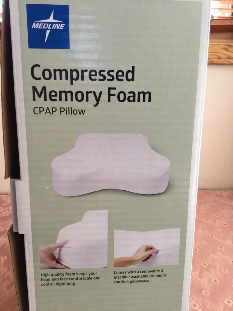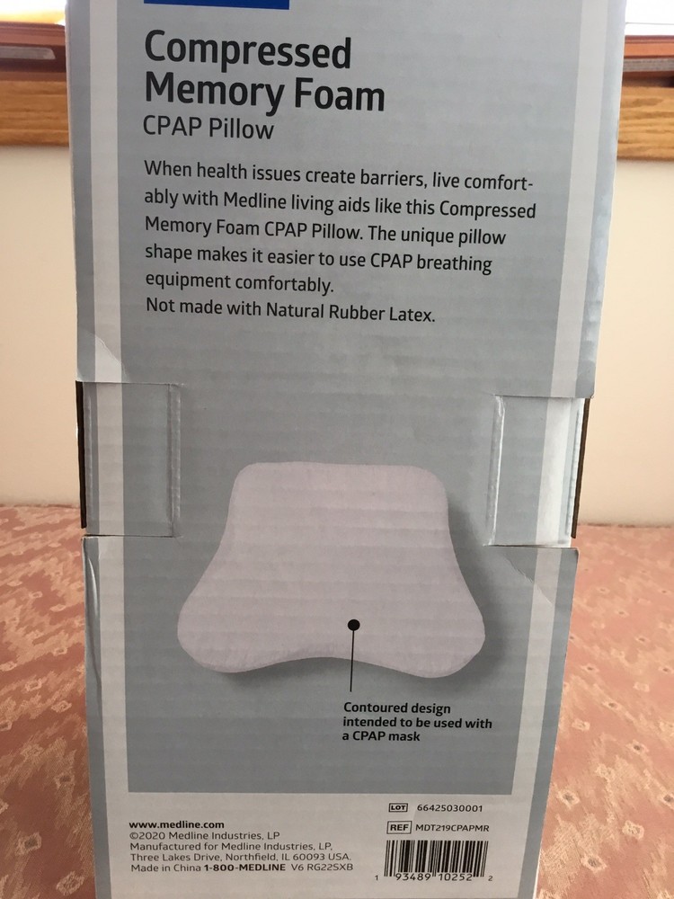 The Medline Compressed Memory Foam CPAP Pillow is a firm and cool comfort foam pillow designed for adults. Made with high-quality memory foam, this contoured pillow provides proper airway alignment to improve sleep and reduce pressure on the mouth, nose, and face. With a removeable cover for easy machine washing, this 18" wide x 14" length x 4.5" high pillow is perfect for side sleepers looking to keep their neck, spine, and hips aligned to reduce the risk of neck or spine pain. The zip closure ensures easy access to the foam, making it a great addition to any bedroom. Comes from a non smoking home. Ships promptly with USPS Ground Advantage.