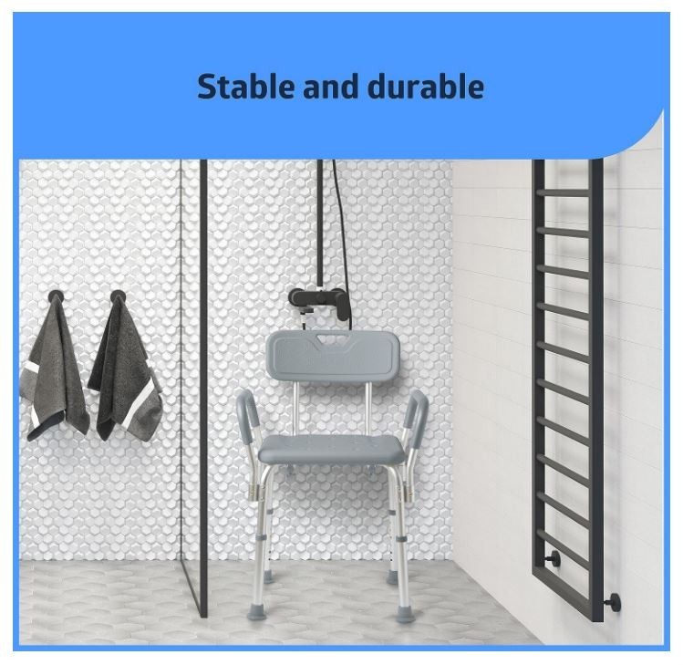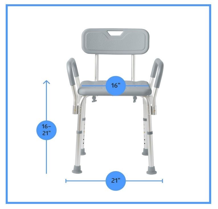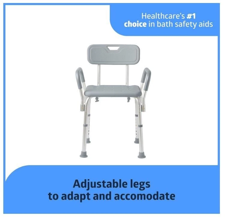 Medline Shower Chair with Backrest and Padded Arms Supports 350 lb in Grey