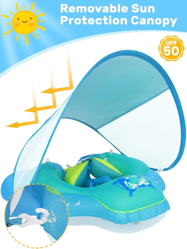 This baby pool float is a game-changer! The removable UPF50+ canopy keeps little ones safe from the sun, and the secure, comfy design makes swimming worry-free. Perfect for ages 3-36 months—my baby loves it! Super easy to inflate and lightweight for travel. Highly recommend for summer fun!