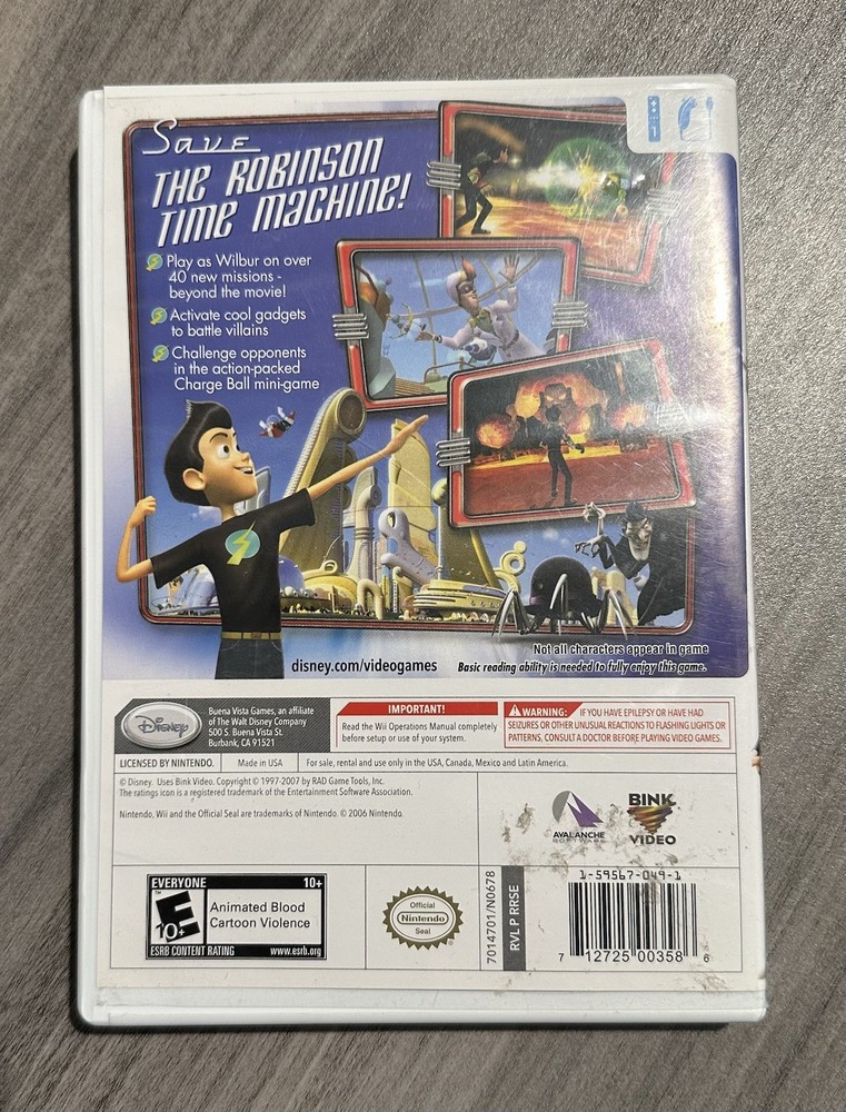 "Meet the Robinsons" is an action and adventure video game released for the Nintendo Wii in 2007. Published by Nintendo, the game is rated E10+ for everyone 10 and up. This game allows players to explore various levels while interacting with the characters from the popular animated movie. With engaging gameplay and colorful graphics, "Meet the Robinsons" offers a fun experience for players of all ages on the NTSC-U/C region code. 12-7-25