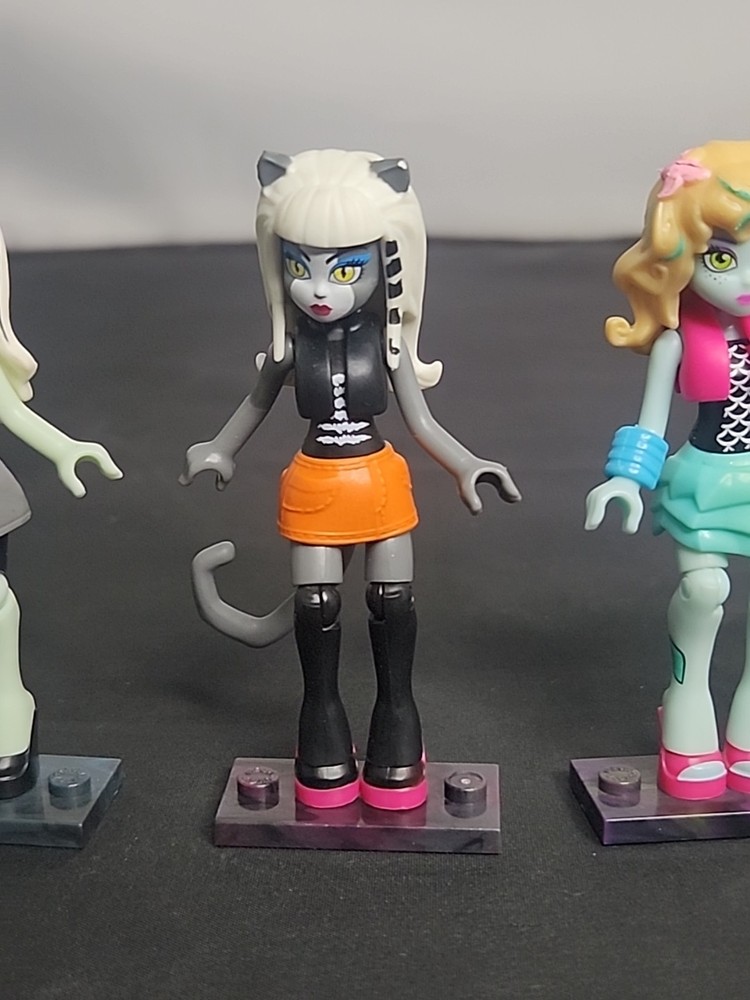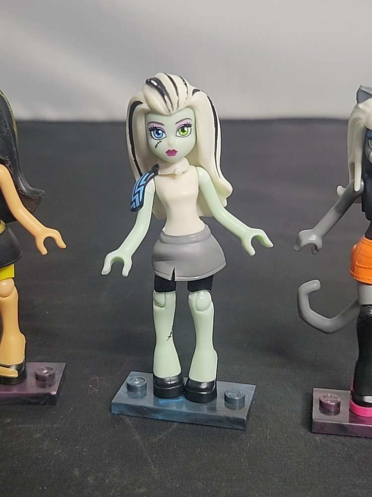 The product is a lot of four Monster High doll figures made of plastic stacking blocks from the Mega Construx brand. Designed for ages 3 and up, these fantasy-themed figures feature characters from the Monster High series, allowing kids to build and play with their favorite Monster High dolls in a fun and creative way. Perfect for fans of the Monster High franchise, these building blocks offer hours of imaginative play and allow children to create their own unique stories and adventures with these popular characters.