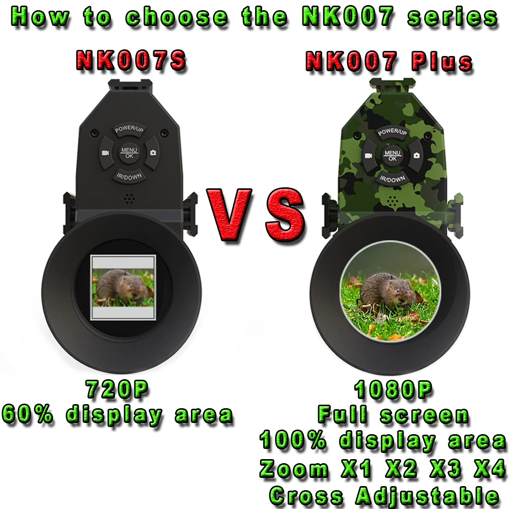 Megaorei NK007 Plus (1080p) Advantages Infrared technology provides stealth: Infrared is not visible to the naked eye, so you become completely stealthy in the dark.940 is more covert than 850. Internal High Definition Screen: Comes with a built-in 1.2-inch HD screen that reduces eye strain and gives you crystal clear vision even on the darkest nights. Adjustable brightness and contrast to suit your needs. Crosshairs on the screen give you pinpoint accuracy. Scope attachments: This product comes with multiple scope attachments and protective tape. Ideal for a variety of applications such as night hunting, wildlife viewing and cave exploration. Easy to use: Our night vision system can be easily mounted to your scope with minimal effort. Built-in DVD: record audio/video Megaorei Infrared Night Vision Rifle Scope Hunting Sight Laser IR HD Cam 940nm SAFE & SECURE SHOPPING 100% SATISFACTION GUARANTEED FAST SHIPPING Real US Warehouse Sellers !!! 100% Brand New and High Quality 2024 Newly Upgraded SHIP From US Local Stock Same day dispatch with Tracking Number ⭐ 2-5 day arrival FREE Return, Seller Pay QUICKLY Reply within 24 Working Hours ANY PROBLEM please email us before feedback, thanks! Megaorei NK007 Plus (1080p) Advantages Infrared technology provides stealth: Infrared is not visible to the naked eye, so you become completely stealthy in the dark.940 is more covert than 850. Internal High Definition Screen: Comes with a built-in 1.2-inch HD screen that reduces eye strain and gives you crystal clear vision even on the darkest nights. Adjustable brightness and contrast to suit your needs. Crosshairs on the screen give you pinpoint accuracy. Scope attachments: This product comes with multiple scope attachments and protective tape. Ideal for a variety of applications such as night hunting, wildlife viewing and cave exploration. Easy to use: Our night vision system can be easily mounted to your scope with minimal effort. Built-in DVD: record audio/video and take photos. Supports up to 32GB TF card : not included: for hours of HD recording time! Technical data: Main parameters: 940 NK007 Plus Display: 390*390 1.2 inch AMOLED round screen 100% actual display area Videoauflösung: 1920*1080 Camera: 12 mm super clear lens User Experience: HD clearer, larger actual display area Cross adjustable: Yes Zoom: X1 X2 X3 X4 Sensor: 1080P 200W Pixel Language: English / Español / portugiesuês / Polski / Français / Pycc K: : / Italiano / German / Nederlands Working time: 1500mAh 1-1.5 hours; when IR is off, 5 hours 2600mAh 1.5-2 hours; when IR is off, 8 hours Color: Black/Camo Green IR: 940Laser IR Visible distance: Maximum visible distance in darkness LED IR: 100-200M \ Laser IR: 200-400M Battery: Use 1 piece rechargeable battery : not included: Voltage: 3,7 V Anti-shock: Passed 1.8M drop test NIGHT VISION FOR HUNTING AND PEST CONTROL. With this compact, light-weighted, integrated, flip-up rear night vision scope, you can quickly and easily transform your normal riflescope into a state-of-the-art night vision scope. It is an offering for a variety of applications such as surveillance, night hunting, wildlife viewing and cave exploration, pest control and so on. FULL SCREEN DISPLAY, WIDER VIEW NightCrystal 4B NK007 Plus night vision camcorder features full screen display, you can see exactly what you see in the scope! It is equipped with a 12mm IR camera, which means the view is wider than NightCrystal 3, which uses a 16mm IR camera). 1-4 TIMES DIGITAL ZOOM With the NightCrystal 4B NK007 Plus night vision video camera's magnification function, you can select suitable magnification times (1x, 2x, 3x, 4x available) through the operation menu. 1080P VIDEO RECORDING Just click the video record button or photo record button of NightCrystal 4B night vision scope camera, you can record the hunting video or take photo with 1920*1080p HD resolution, no matter day or night, and you can share your hunting experience with your friends, show yourself on your social network. COMPLETELY STEALTH An energy-efficient 3W IR flashlight is integrated into the night vision clip-on attachment, this infrared flashlight makes night vision brighter and clearer. It is invisible to the naked eye and keeps your position hidden. You can adjust the intensity of the IR light by pulling back or stretching the head of the IR flashlight. And the direction of the IR flashlight is adjustable, so you can overlap the IR light well to brighten up your vision. SUPER SHOCKPROOF When shooting outdoors, there is a lot of play, poor quality or DIY products. After prolonged use, some components may come loose, causing the equipment not to work properly. We use silicone materials to protect important components that can be easily damaged by strong impact. This silicone packaging design gives NightCrystal 4B a super anti-shock function. It has passed 1.8m drop test! It has 0.308 caliber rifles recoil rating! UP TO 400 METERS VIEWING DISTANCE IN PITCH DARKNESS The integrated 1.2-inch HD screen on the eyepiece shows you colorful image in daytime vision and black and white image in night vision in complete darkness. You can see everything crystal clear in complete darkness up to 400 meters. No more DIY needed, ideal for beginners. There are two types of built-in IR flashlights to choose from: LED IR flashlight visibility range at night: up to 100 meters; LASER IR flashlight visibility range at night: up to 400 meters; Tips: 1. due to manual measurement, please accept 1-3cm error. 2. due to the difference of light and screen, the color of the product may be slightly different from the picture. Packing List: 1 x Megaorei NK007 Plus Night Vision Kit. (With 32g Card+Battery+Charger) 1 x Manual 4x inner rings (40mm/42mm/45mm/47mm use for 38-48mm scope). Payment Delivery details Terms of sales About us Contact us Payment We accept PayPal,ebay payment. Please make sure your address is correct before you pay. Feedback will be left automatically after we receive