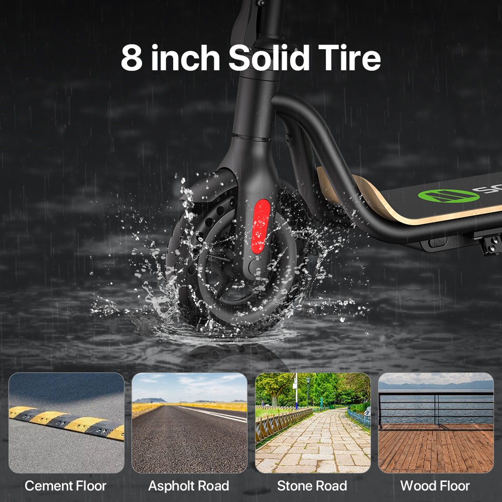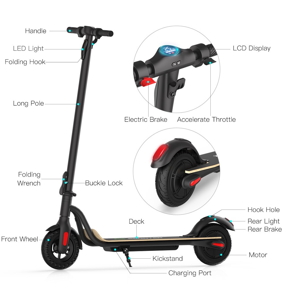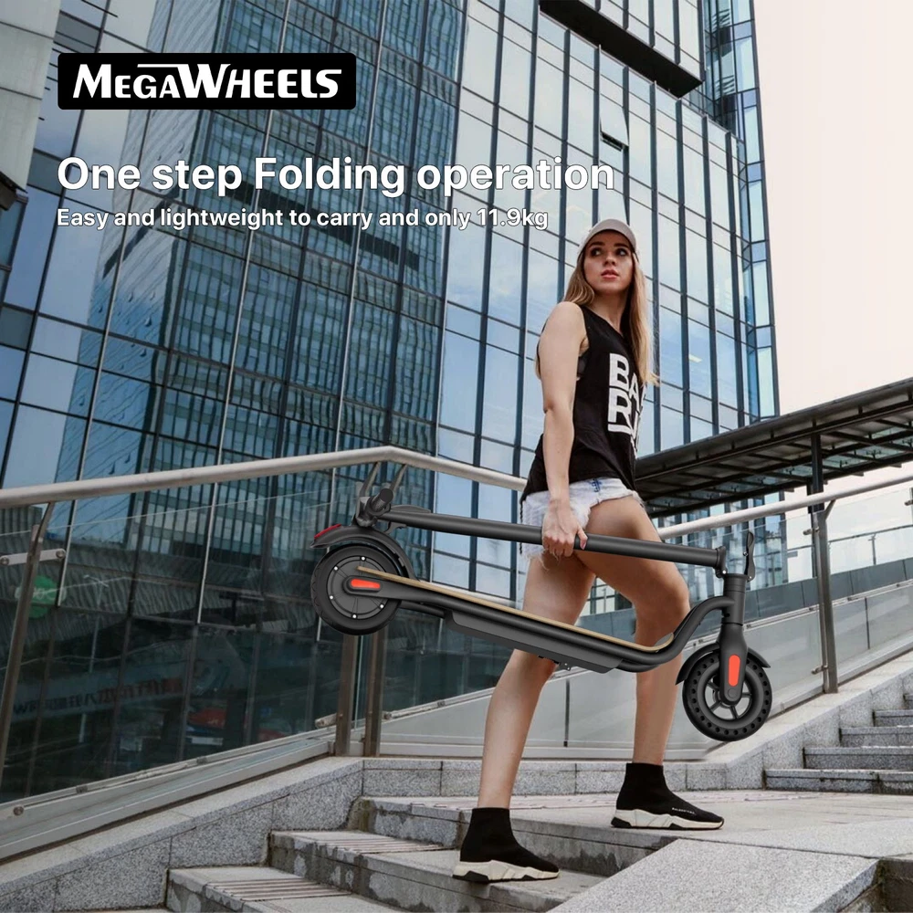 Main features: LONG RANGE BATTERY LIFE - Powerful 250W motor and 5.2 Ah/36V lithium battery pack that supports a speed of up to 15 Mph with a range up to 7 Miles. Updated large-capacity battery life, designed for commuters and longer distances. 8.0" HONEYCOMB & SOLID TIRES - Shock-absorbing rubber tires offer a smooth ride even over bumpy surfaces. PORTABLE FOLDING DESIGN - Electric scooter can be folded easily in 3 seconds with quick folding latch for easy carrying and storage. BATTERY INDICATOR AND LIGHTS - Battery indicator keeps to track battery life. Ultra bright LED headlight and taillight. Fast recharging about 4 hours. GEAR SHIFT SETTING - 1st gear for a 7 Mph comfortable ride or 3rd gear to get the 15 Mph fast experience. Extremely fun to ride and end boring commutes. Specification: Brand: Megawheels Model: S10 Dimension: Unfolding 105 x 43 x 118 cm; Folding: 105 x 43 x 48 cm Net Weight: 11.9kg Color: Black Frame Material: Aluminium Tires: 8.0" Honeycomb Front Tire & Solid Rear Tire Max Load: 100kg Max speed: 25KM/h Speed level: Gear 1--Max 10km/h ; Gear 2--Max 20km/h; Gear 3--Max 25km/h Mileage: 8-12km Grade Ability: 20 degree slope Working Temperature: -15°C-50°C Storage Temperature: -20°C-25°C Mode Type of Motor: Brushless hub motor Battery Type: High quality lithium battery Battery Capacitiy: 5.2 Ah Battery Voltage: 36V Charger Input Voltage: 100V-240V Charger Frequent: 50Hz/60Hz Charging time: 4 hours Package Contents: 1 * Folding Electric Scooter 1 * Battery Charger 1 * User's Manual NOTE:The appearance of the product you receive may vary slightly from the image shown due to differing production batches! Riding Skills: -Put your foot in the front of the scooter and the other foot on the floor before riding. -Make sure that the riding route is smooth. -Slide forward with the food standing on the floor before starting (like riding the scooter without power). -Immediately press the acceleration button and lean forward to avoid falling over backward due to inertia, so that the electric scooter will enter the working status. -Avoid pressing the handle with your body in the acceleration and deceleration process. Put one foot ahead and the other behind (like on the sliding plate/surfboard, put one foot ahead and the other behind by 70-90 for better comfort). -Turning – The turning principle of the electric scooter is the same with that of surfboard/sliding plate/skis. The handle shall be balanced with the body. Observe and make sure that turning is safe before turning. Tips: Before riding the scooter, please put one foot on the scooter deck and the other foot on floor and push the scooter forward by kicking the floor for some distance, in this way, the scooter will get some impulse to run forward. Note: This products have been certified under UL2272 safety standards. On Jul 6, 2025 at 20:03:33 PDT, seller added the following information: