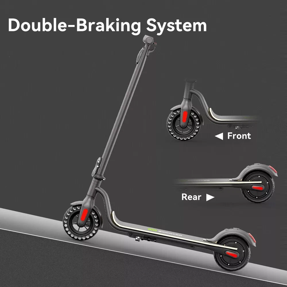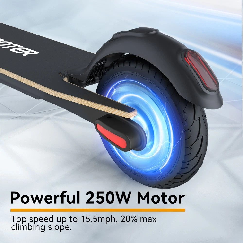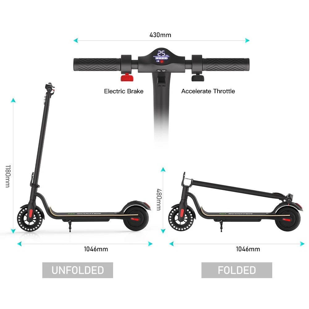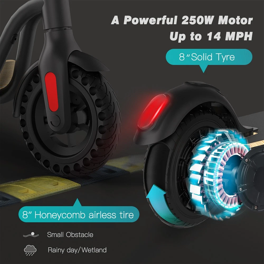 Main features: 🛴LONG RANGE BATTERY LIFE - Powerful 250W motor and 7.8 Ah/36V lithium battery pack that supports a speed of up to 15 Mph with a range up to 13 Miles. Updated large-capacity battery life, designed for commuters and longer distances. 🛴8.0" HONEYCOMB & SOLID TIRES - Shock-absorbing rubber tires offer a smooth ride even over bumpy surfaces. 🛴PORTABLE FOLDING DESIGN - Electric scooter can be folded easily in 3 seconds with quick folding latch for easy carrying and storage. 🛴BATTERY INDICATOR AND LIGHTS - Battery indicator keeps to track battery life. Ultra bright LED headlight and taillight. Fast recharging about 5 hours. 🛴GEAR SHIFT SETTING - 1st gear for a 6 Mph comfortable ride or 3rd gear to get the 15 Mph fast experience. Extremely fun to ride and end boring commutes. Specification: Brand: Megawheels Model: S10 Dimension: Unfolding 105 x 43 x 118 cm; Folding: 105 x 43 x 48 cm Net Weight: 11.9kg Color: Black Frame Material: Aluminium Tires: 8.0" Honeycomb Front Tire & Solid Rear Tire Max Load: approx. 100kg Max speed: approx.25KM/h Speed level: Gear 1--Max 10km/h ; Gear 2--Max 20km/h; Gear 3--Max 25km/h Mileage: approx.17-22km Grade Ability: approx.20 degree slope Working Temperature: -15°C-50°C Storage Temperature: -20°C-25°C Mode Type of Motor: Brushless hub motor Battery Type: High quality lithium battery Battery Capacitiy: 7.8 Ah Battery Voltage: 36V Charger Input Voltage: 100V-240V Charger Frequent: 50Hz/60Hz Charging time: approx.5 hours Package Contents: 1 * Folding Electric Scooter 1 * Battery Charger 1 * User's Manual Before use, please kindly read the schematic diagrams and assembly steps of manual to assemble the front wheel: 1. Step on the base, lift the fork firmly to remove the base. 2. Remove the rubber plugs on both sides of the front fork, and unscrew the front axle with the two 6mm hexagon wrenches in the package. 3. When installing the front wheel (please pay attention to the direction of the tread of the tire, as shown in the lower right or the inflation port to the right), and tighten the front wheel axle. 4. Plug back the rubber plugs on both sides of the front fork. Note: This products have been certified under UL2272 safety standards. NOTE:The appearance of the product you receive may vary slightly from the image shown due to differing production batches! On Jul 4, 2025 at 16:06:04 PDT, seller added the following information:
