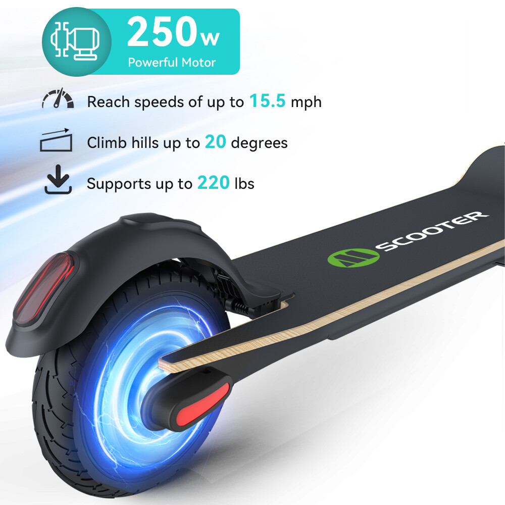 Features: 【 Anti-puncture solid tires 】The electric scooter uses 8.0-inch honeycomb shock-absorbing tires with high elasticity and wear resistance. The honeycomb tire does not require inflation, repair, maintenance.And it's don't worry about punctures.It also has a good anti-slip effect. 【 5.0 AH large capacity battery and more battery life 】Fitted with 5.0 Ah lithium-ion battery, the scooter can provide long full mileage 8-12km, up to 12km range.Full charged for only 3-4 hours, will hold climbing ability 20 degrees. 【 Three gears with headlight & rearlight 】Three gears (6.25MPH=10KM/H, 12.5MPH=20KM/H, 15.5MPH=25KM/H), easy to change through a button on the LED display which also shows the battery and the gear clearly. The low-speed gear prevents teenagers or children from driving too fast. LED Headlight and rearlight double insure your safety at night. 【 High level security 】This S10 electric scooter applies dual brake system (a motor electronic brake on the handlebar and a foot friction rear brake on the back wheel) with CE/UL/FCC/RoHS safety certification. The pedal is made of Malleable Maple Wooden, which is more durable. You can easily cross all kinds of roads, reduce bumps and keep you feel comfortable. 【 None-0 start 】The electric scooter applies a none-0 start for the safety consideration, please scroll for a distance to start. Features a bigger and longer deck, a double braking system, a long-range battery, and a One-step portable folding mechanism, the Megawheels electric scooters can bring a smooth and comfortable riding into your way.We provide professional technology support. Any question, just contact us, we will reply in 24 hours with satisfying solutions. 【 Delivery time and Service 】We have warehouses in the US, scooters can be delivered in 3-7 days. If you have any questions about the scooter, please feel free to contact us, we will help you in 24 hours. Specification: Brand: Megawheels Model: S10 Dimension: Unfolding 105 x 43 x 118 cm; Folding: 105 x 43 x 48 cm Net Weight: 11.9kg Color: Black Frame Material: Aluminium Tires: 8.0" Honeycomb Front Tire & Solid Rear Tire Max Load: 100kg Max speed: approx.25KM/h Speed level: Gear 1--Max 10km/h ; Gear 2--Max 20km/h; Gear 3--Max 25km/h Mileage: approx. 8-12km Grade Ability: 20 degree slope Working Temperature: -15°C-50°C Storage Temperature: -20°C-25°C Mode Type of Motor: Brushless hub motor Battery Type: High quality lithium battery Battery Capacitiy: 5.0 Ah Battery Voltage: 36V Charger Input Voltage: 100V-240V Charger Frequent: 50Hz/60Hz Charging time: approx. 3.5 hours Package Contents: 1 * Folding Electric Scooter 1 * Battery Charger 1 * User's Manual LCD Dashboard Long Battery life 8.0'' Anti-puncture Tires Three speeds (10km/h, 20km/h, 25km/h), easily changed via buttons on the LED display, also clearly showing remaining battery and headlight status. With a battery capacity of 5200mAh, this adult electric scooter has a lifespan of up to 8-12km (depending on road conditions and rider's weight), and the charging time is 3-4 hours. Honeycomb tires can prevent tire blowouts. You can drive freely on any road. You don't have to worry about tire blowouts,it can avoid trouble during driving. Before use, please kindly read the schematic diagrams and assembly steps of manual to assemble the front wheel: 1. Step on the base, lift the fork firmly to remove the base. 2. Remove the rubber plugs on both sides of the front fork, and unscrew the front axle with the two 6mm hexagon wrenches in the package. 3. When installing the front wheel (please pay attention to the direction of the tread of the tire, as shown in the lower right or the inflation port to the right), and tighten the front wheel axle. 4. Plug back the rubber plugs on both sides of the front fork. Note: Our products have been certified under UL2272 safety standards.